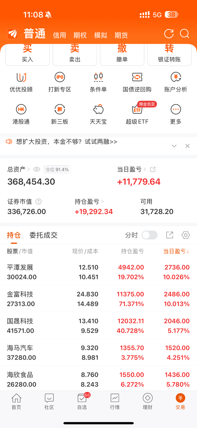 $平潭发展(SZ000592)$ $海欣食品(SZ002702)$ $金富科技(SZ003018)$ 今日收获三个涨停板