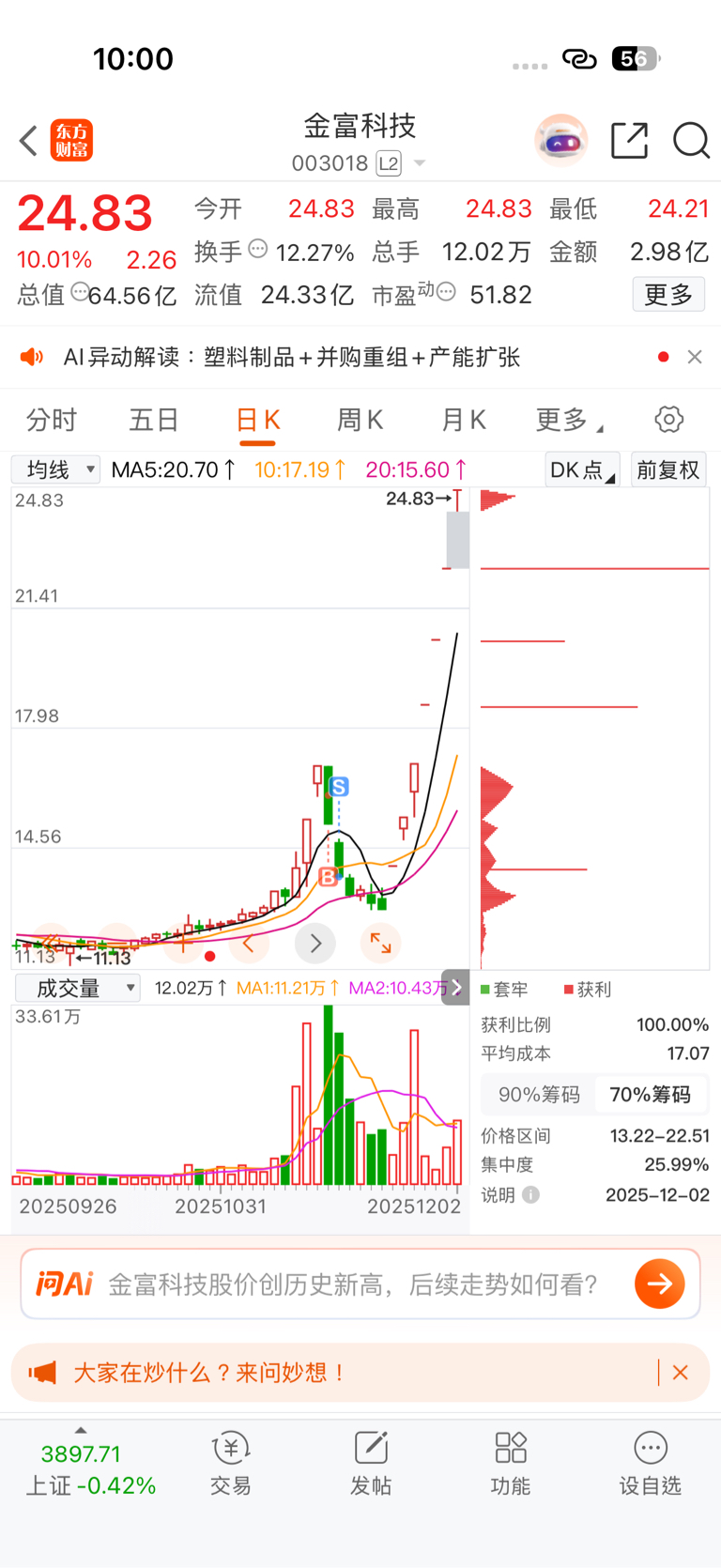 最近的操作有点迷啊,昨天卖飞了平潭,前天卖飞了海王,上星期卖飞了金富!只剩下海马