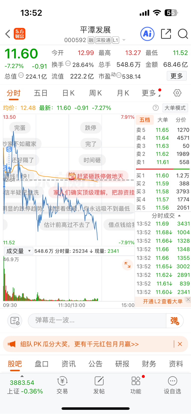 $平潭发展(SZ000592)$ 今天早上竞价预感就不妙,12.99 还好上午跑掉了,太多太多贴吧群了 可能下波周五才能启动了