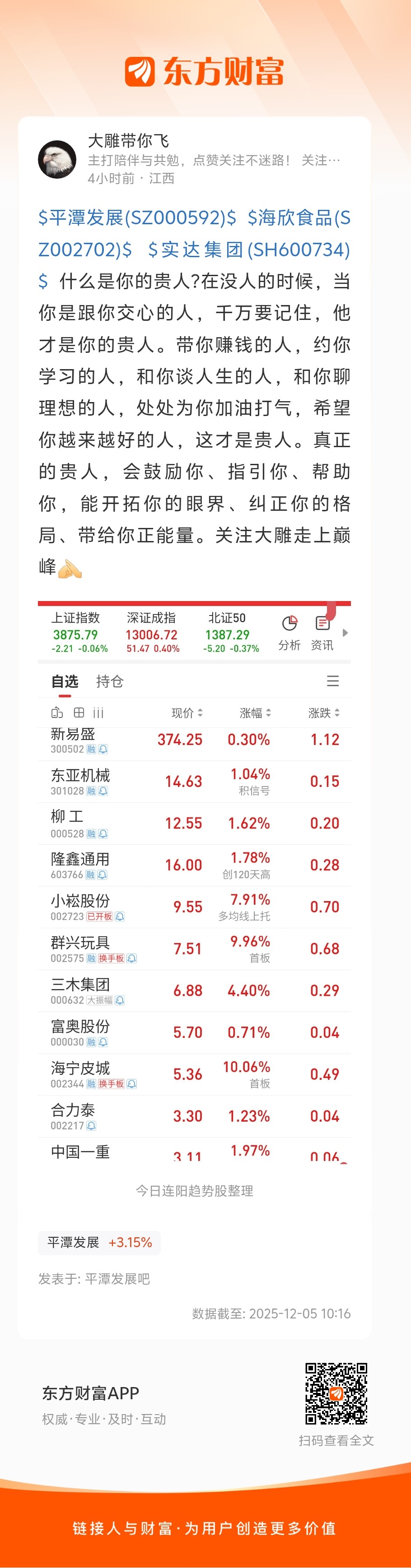 $平潭发展(SZ000592)$ $和而泰(SZ002402)$ $大众公用(SH600635)$ 早上的连阳趋势股,你中了吗?