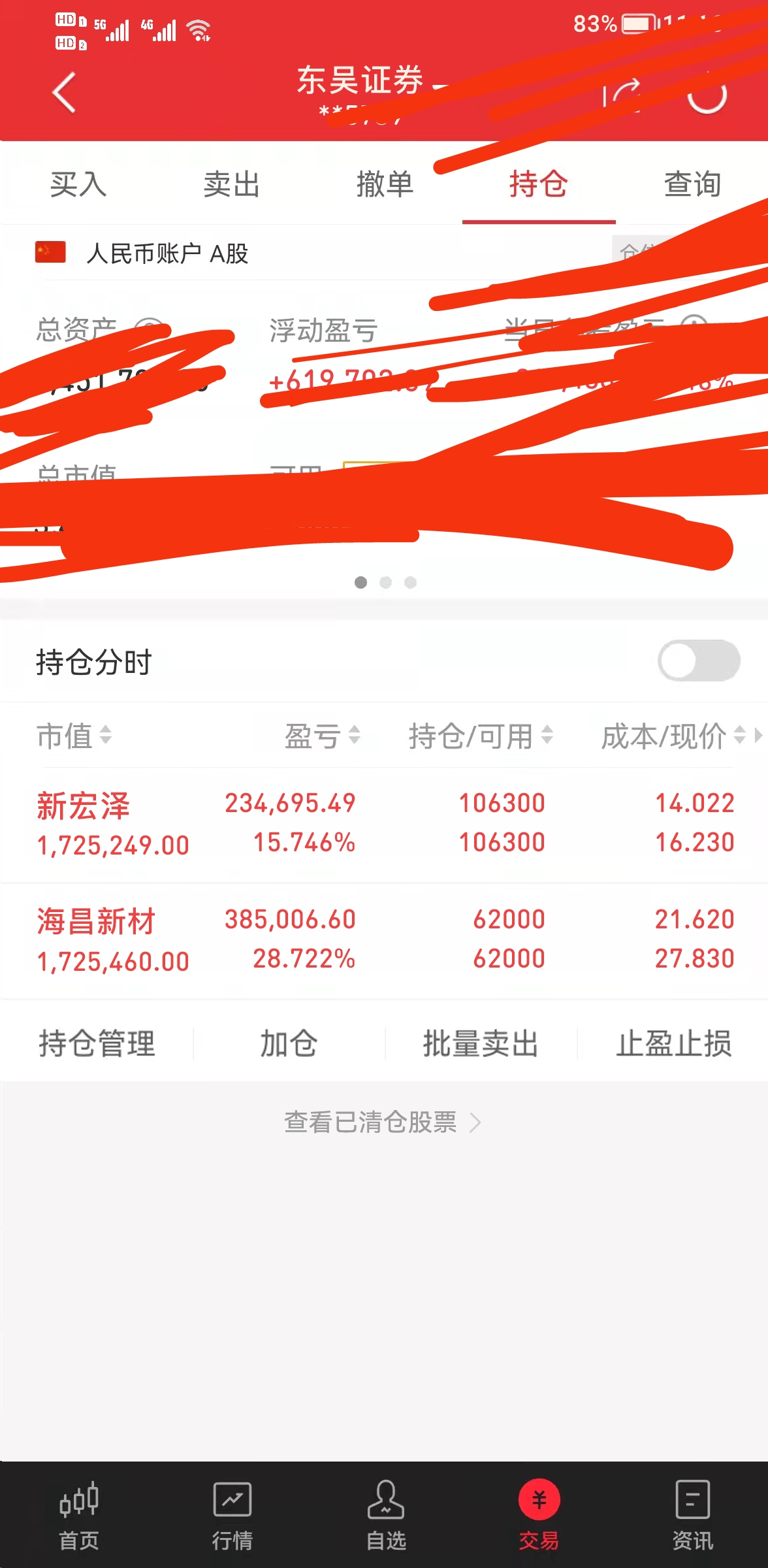 朋友们中午好,更新一下今日持仓新宏泽继续持有还不错十几点,海昌新材一举冲击28c