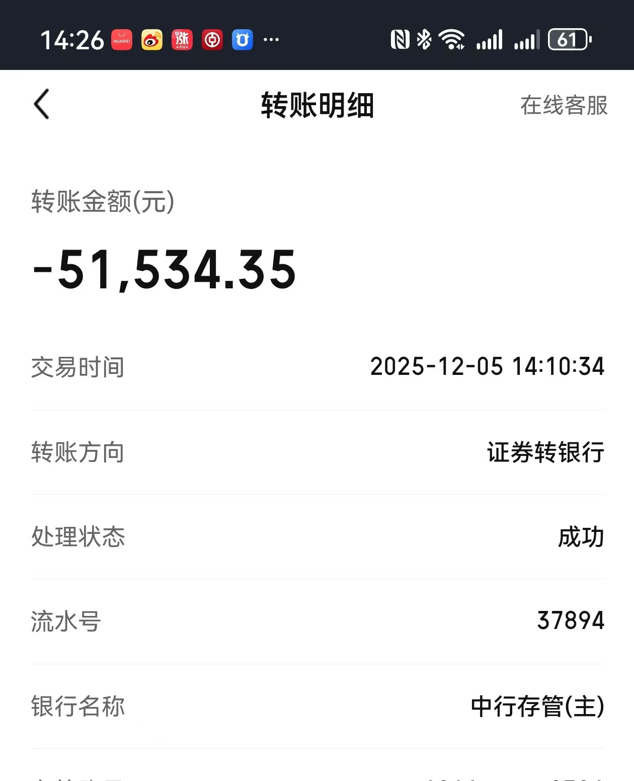 赚了点股数,赚了点钱,转出去过周末。