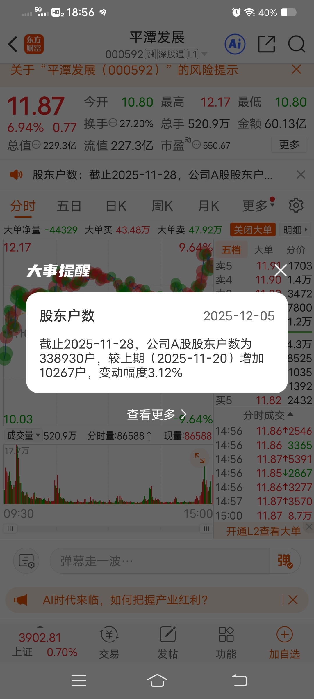 $平潭发展(SZ000592)$ 一周多了一万多股东。