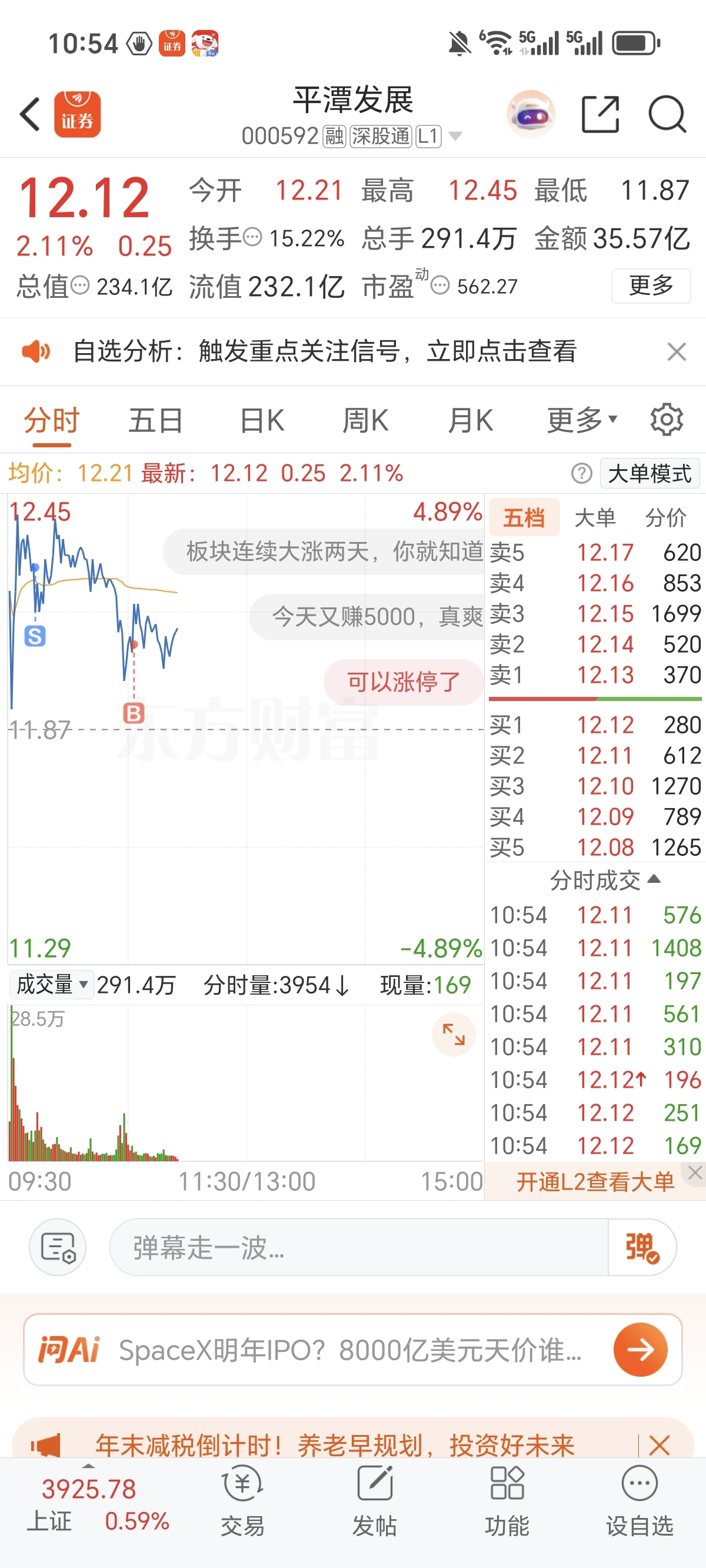 $平潭发展(SZ000592)$ 平潭发展洗盘手法还是很凶悍的,在伴生龙头和富直接一字板情况下,还是这样洗,我猜测的是平潭会高举高打,但是早盘主力不愿意这样做,只能顺势跟着主力做下T。有人一看走势不如一众小弟,然后就各种叫空,我觉得现在平潭处于监管状态,小阴小阳这样走挺好的,既洗了盘,又可以避免再次被监管限制。这样才能走了更高,志存高远。#炒股日记# #股市怎么看# #实盘记录#