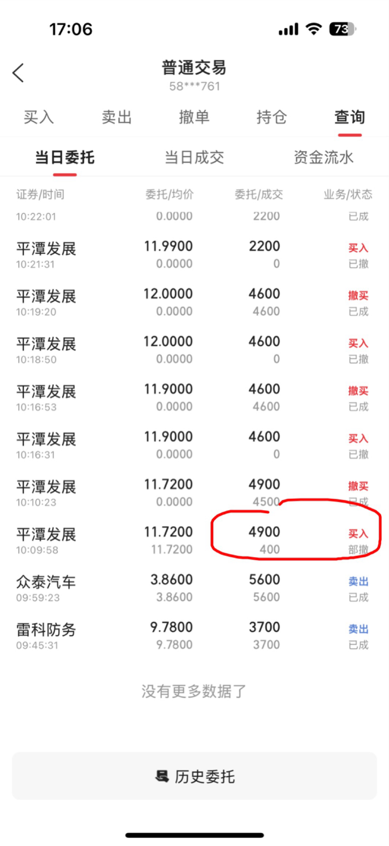 2⃣平摊最低点挂了4900股只成交了400股(这就有点坑了,成本没降多少)