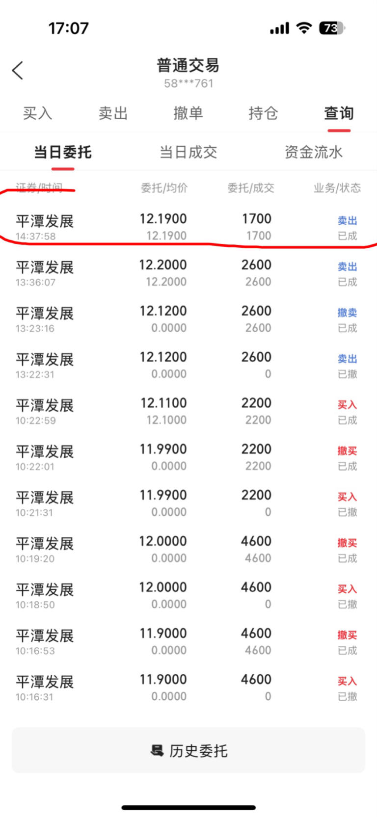 3⃣最后这1700股 不知道怎么卖出去的(哈哈,可能也是手滑点了,明天低开少亏点吧)