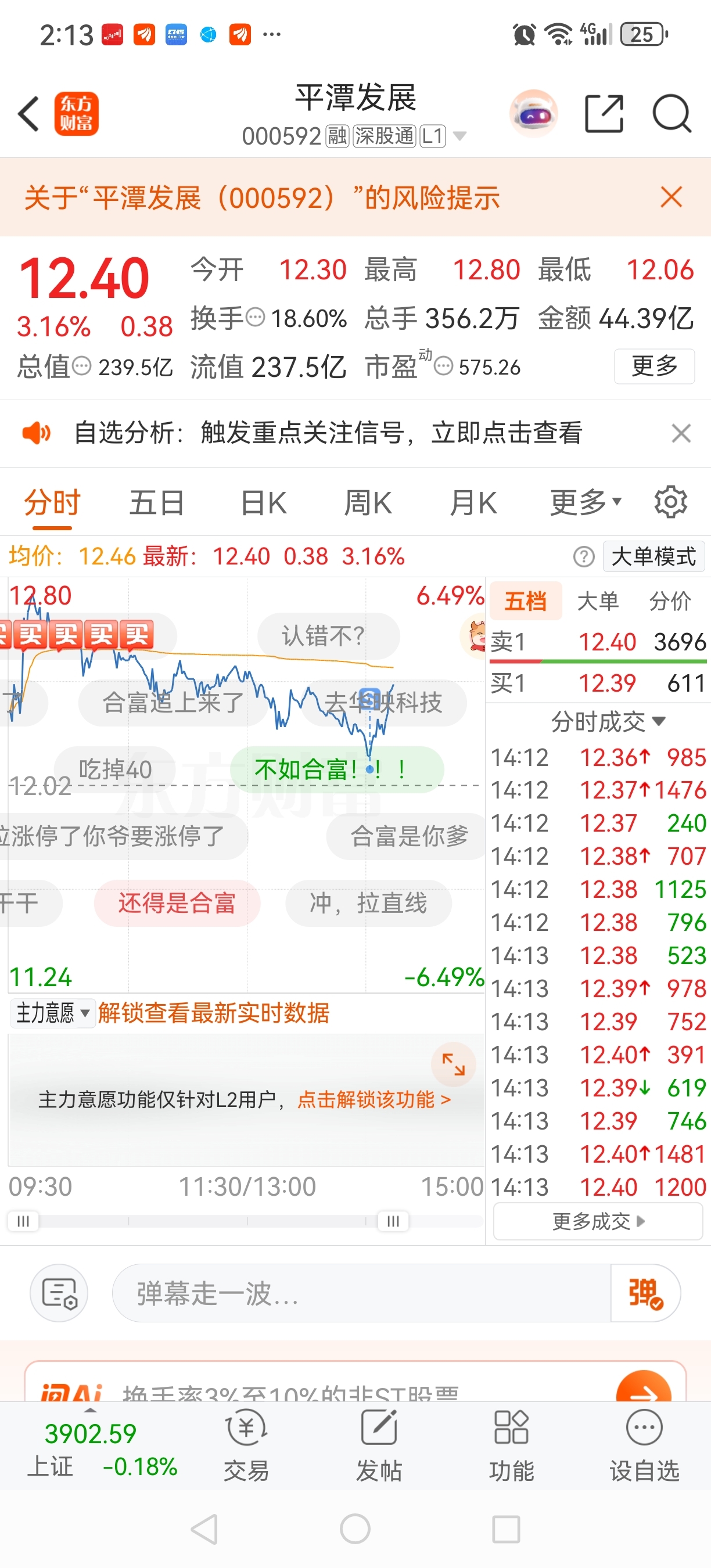 $平潭发展(SZ000592)$ 是我盯你还是你盯我呀,就这么巧,全天的最低给我赶上