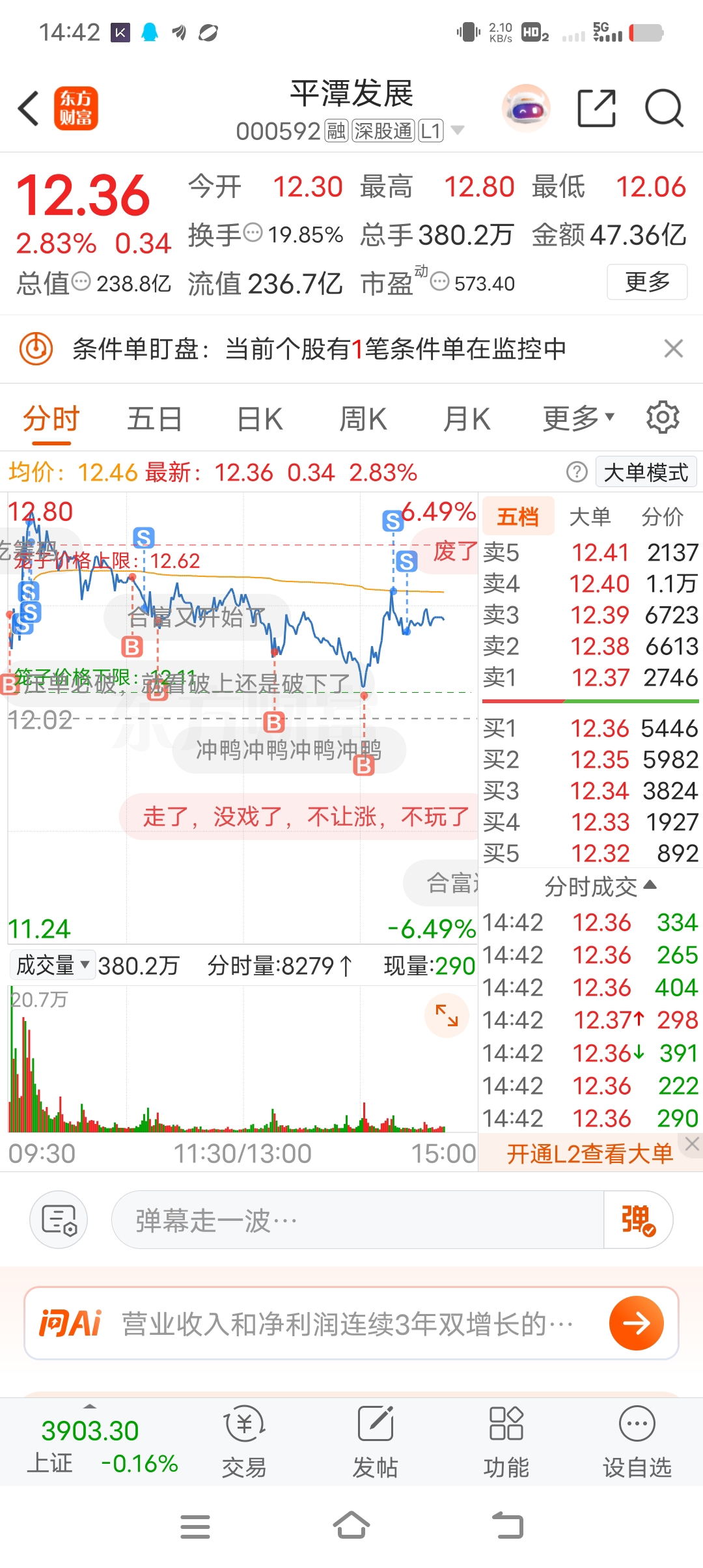 $平潭发展(SZ000592)$ 今天就这样咯,不绿就可以了,明天还有几个点涨,拿稳扶好
