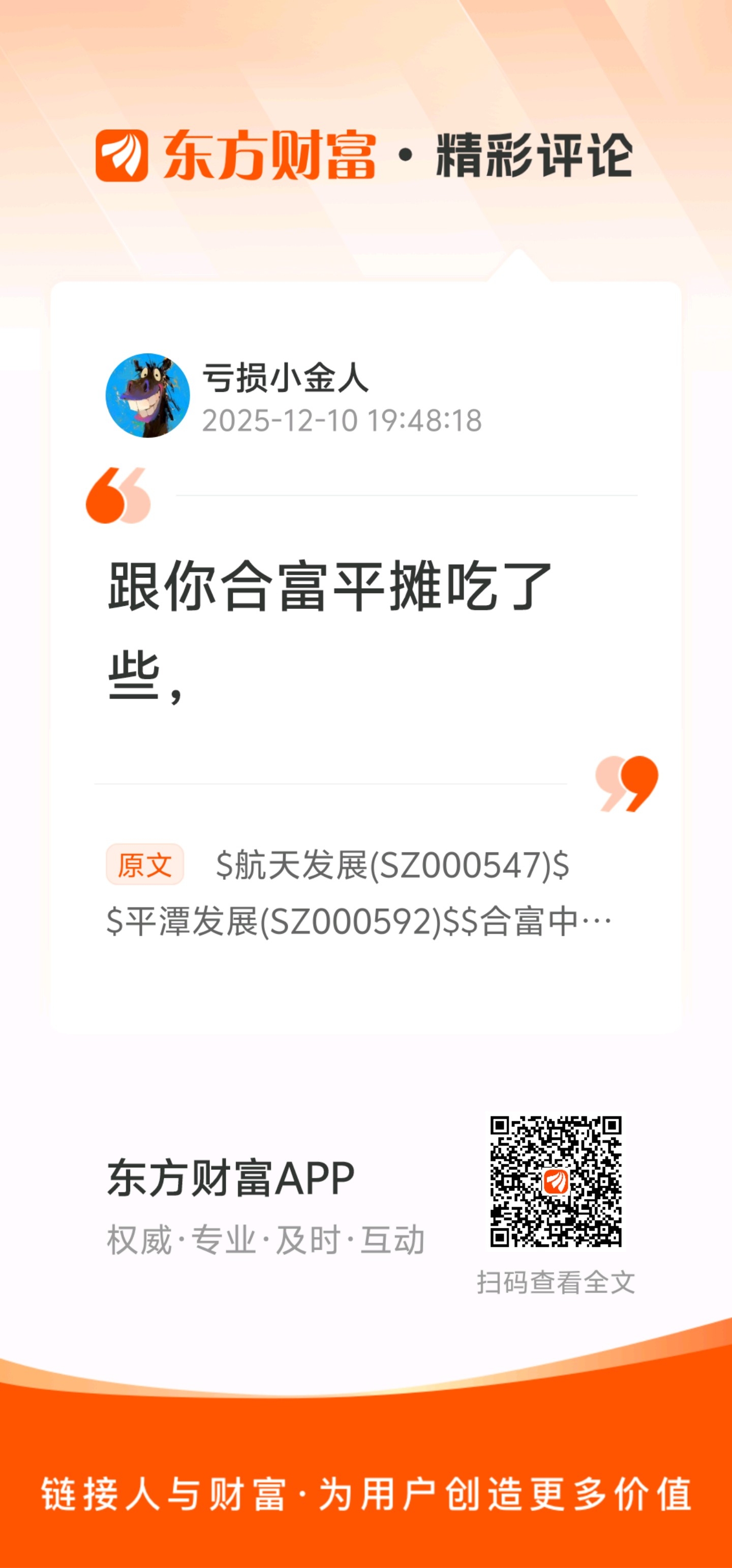 $平潭发展(SZ000592)$ $合富中国(SH603122)$ $航天发展(SZ000547)$ 有很多粉丝关注我在平潭发展合富中国吃的满嘴流油,多的都翻倍了,但是这并不代表你又行了,凭运气赚的钱,你追涨杀跌还是会亏下去的!希望所有粉丝都能管住手,有机会时候再下手,只要你能管住手,赚钱真的不难的!!!