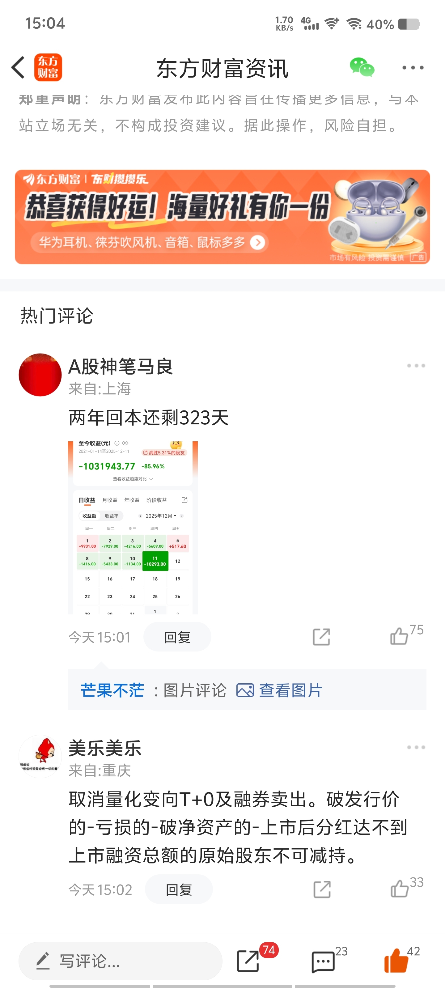 $平潭发展(SZ000592)$ $合富中国(SH603122)$ $实达集团(SH600734)$ 我对我的铁粉要求很严格,如果这是我的铁粉,这样玩,天天亏钱,我要用脚踢他,要不就送到工业富联去打螺丝或者去峨眉山当野人,总比天天亏钱要好吧?股市的钱赚不完,但是散户的钱是可以亏完的!如果你持续亏损,该想想以后的路了!遇到大雕这样的贵人,请好好珍惜!