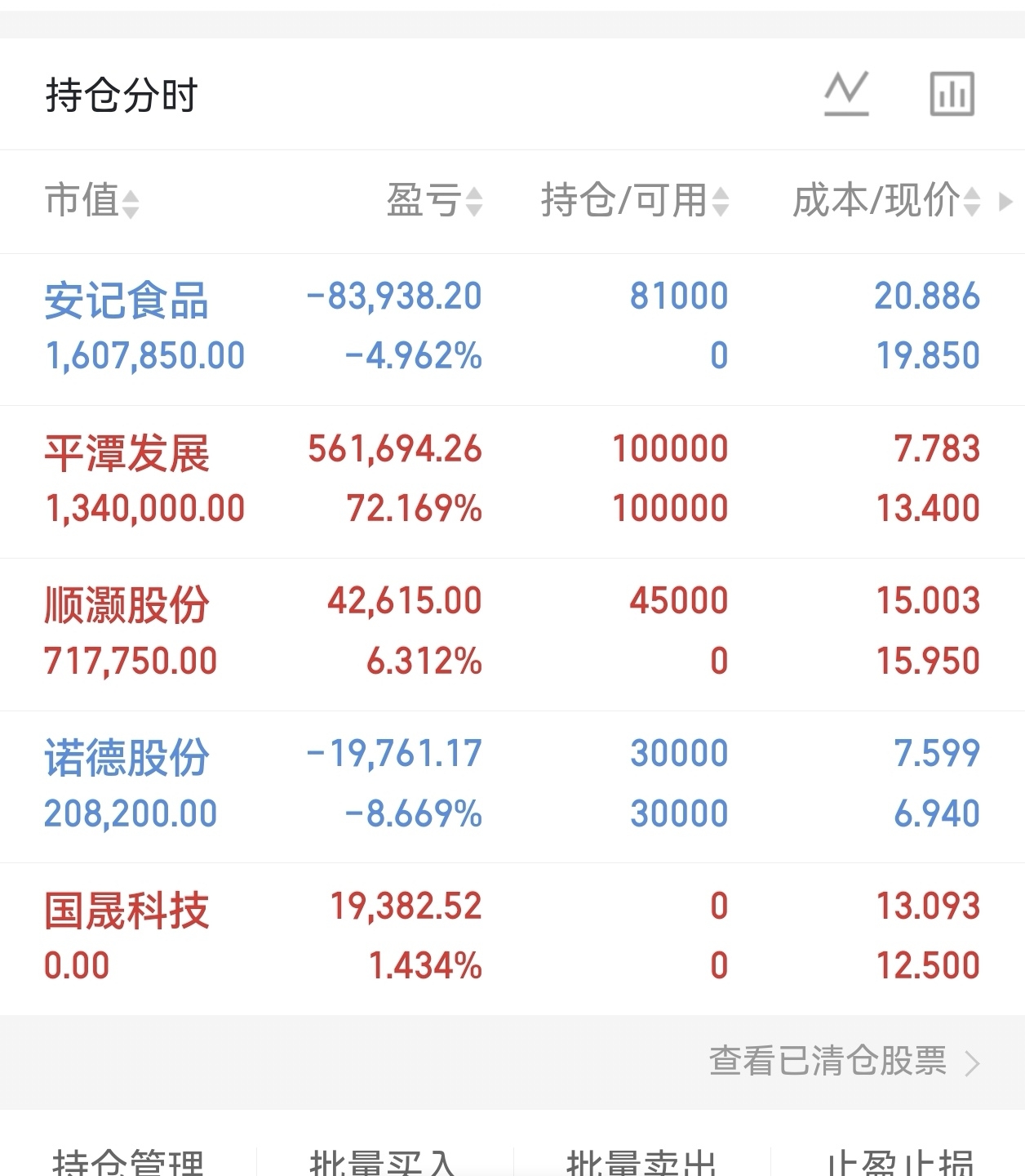 还有就是今天进了$顺灏股份(SZ002565)$ $安记食品(SH603696)$ 出了国晟科技!