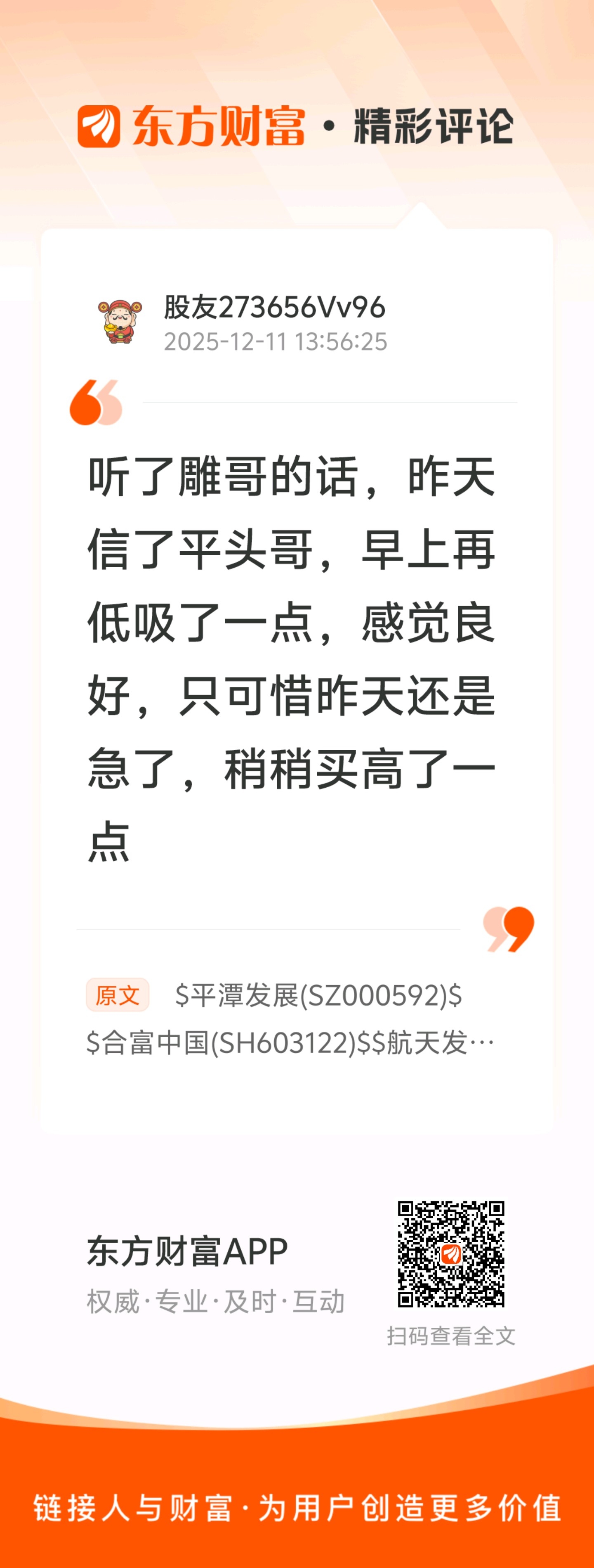 $平潭发展(SZ000592)$ $永辉超市(SH601933)$ $安妮股份(SZ002235)$ 很多人天天追涨杀跌频繁换股,而这2个月老实待在平潭发展的赚的满嘴流油。放弃幻想!紧跟龙头,紧跟雕哥!才是散户唯一能赚钱的选择