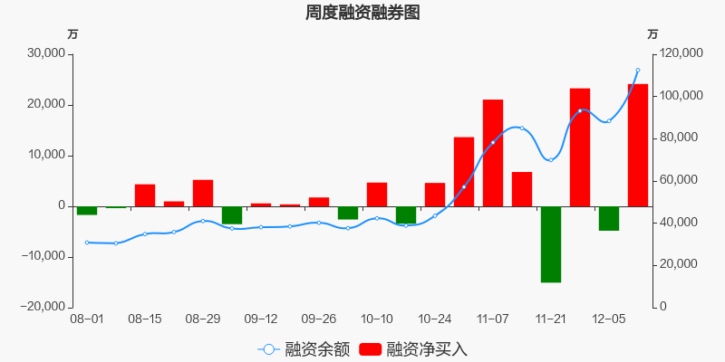 平潭发展本周(2025/12/08-2025/12/12)累计涨幅达13.82%,截至12月12日最新股价报收13.51元。从增量上来看,12月8日至12月11日融资买入交易规模18.12亿元,融资偿还规模15.71亿元,期内融资净买入2.41亿元。从存量上来看,截止12月14日,平潭发展融资融券余额11.27亿元,其中融资余额规模11.25亿元,融券余额规模163.45万元。