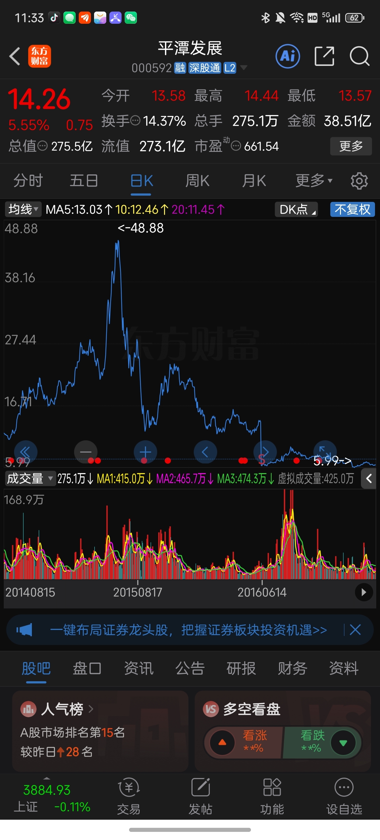 $平潭发展(SZ000592)$ 离15年的48.88还早着呢鉴定看好祖国统一大业!