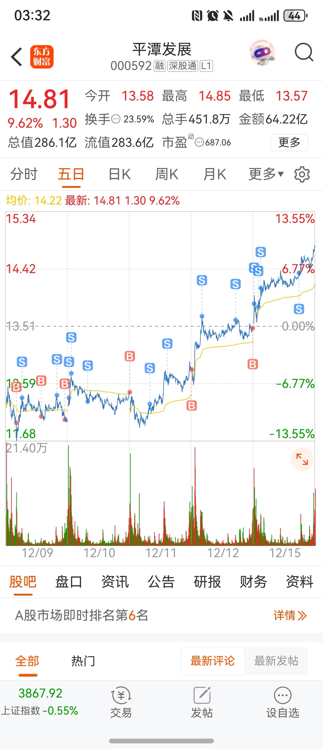 $平潭发展(SZ000592)$ 这个股票我本来打算一直抱到20块的,现在被你们这些跟风的散户玩坏了,你们满意了吧