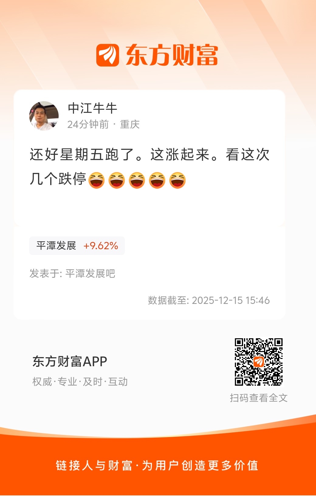 $平潭发展(SZ000592)$ $航天发展(SZ000547)$ $龙洲股份(SZ002682)$ 好多这种降智商的啊,看好就买不看好就卖,卖飞了就希望跌停证明自己是对的……请问你是韭菜你自己知道吗