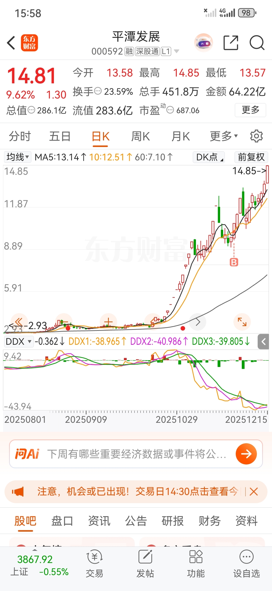 $平潭发展(SZ000592)$ 一股没T,一股没卖,想在这只票吃大肉,必须是要有大格局,大勇气之人,异动又如何?停牌又如何?无所畏惧