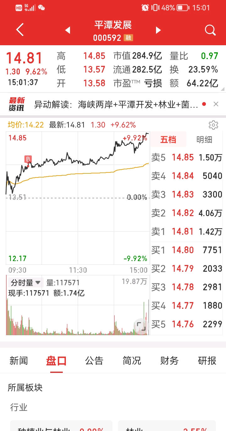 $平潭发展(SZ000592)$ 从成交量来看,完全看不见顶在哪,开盘又不回调,太可怕了,所以又追了回来