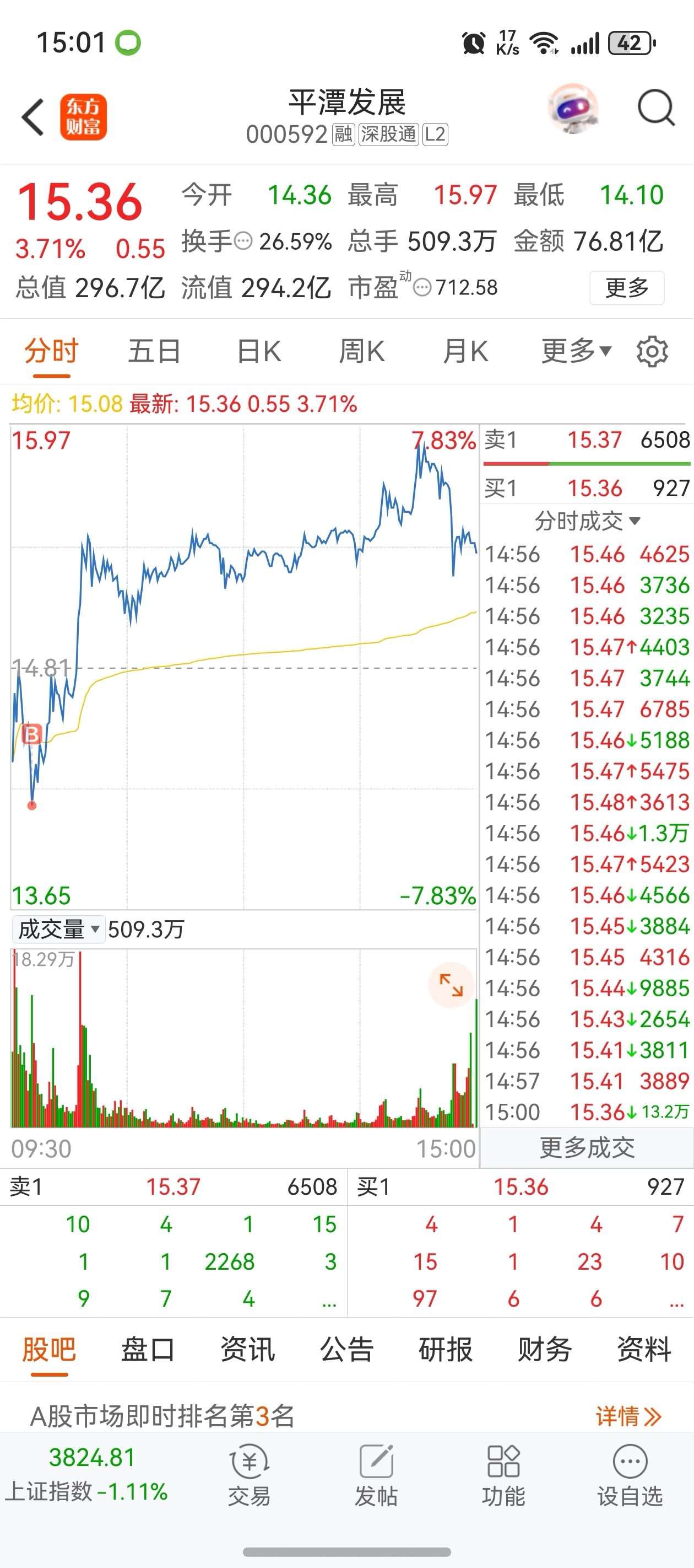 $平潭发展(SZ000592)$ 尾盘挂单没成交出去!!!补成满仓了