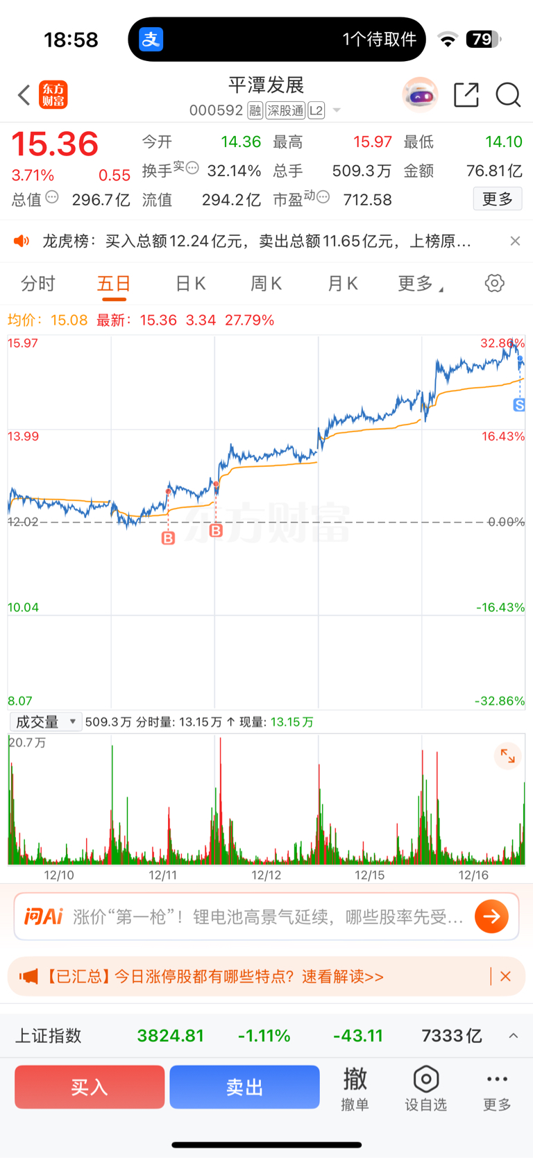 $平潭发展(SZ000592)$ 没卖到高点,但是三天吃了20多个点满足了,祝还在的兄弟们发财~