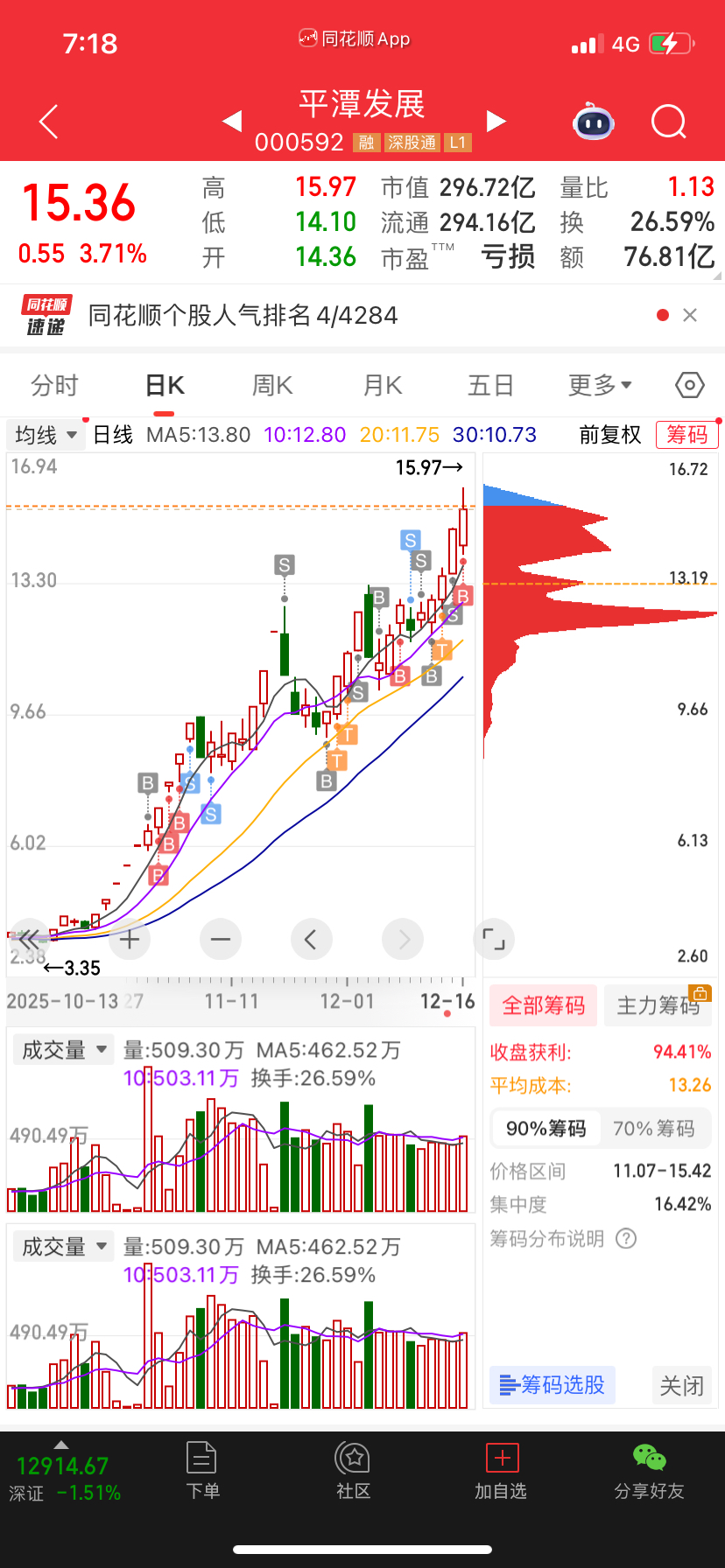 $平潭发展(SZ000592)$ 胆子还是太小了,怕什么异动停牌,一直没有重仓