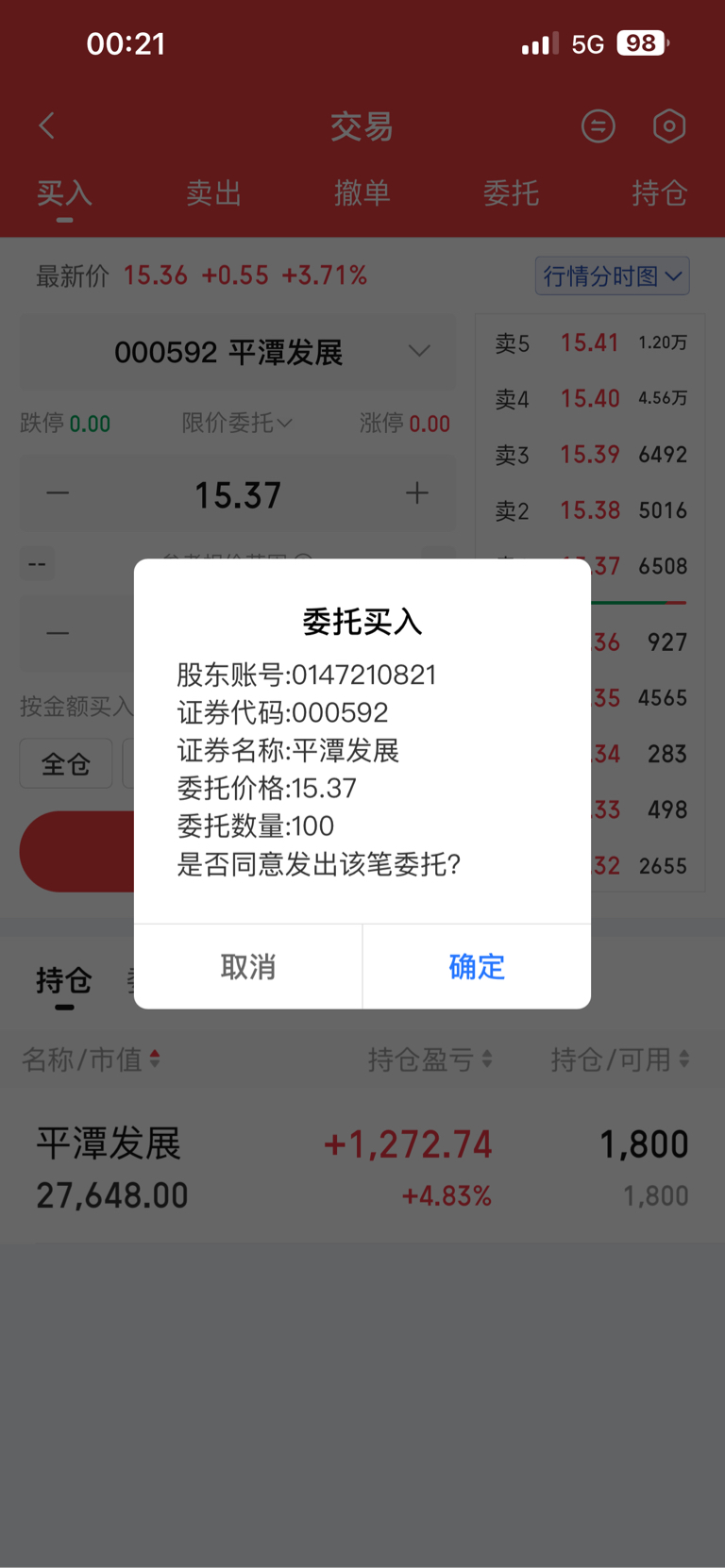 $平潭发展(SZ000592)$ 刚才挂单了,并没有任何提示,真的非常怀疑有人故意散布假消息,大家自己可以试试