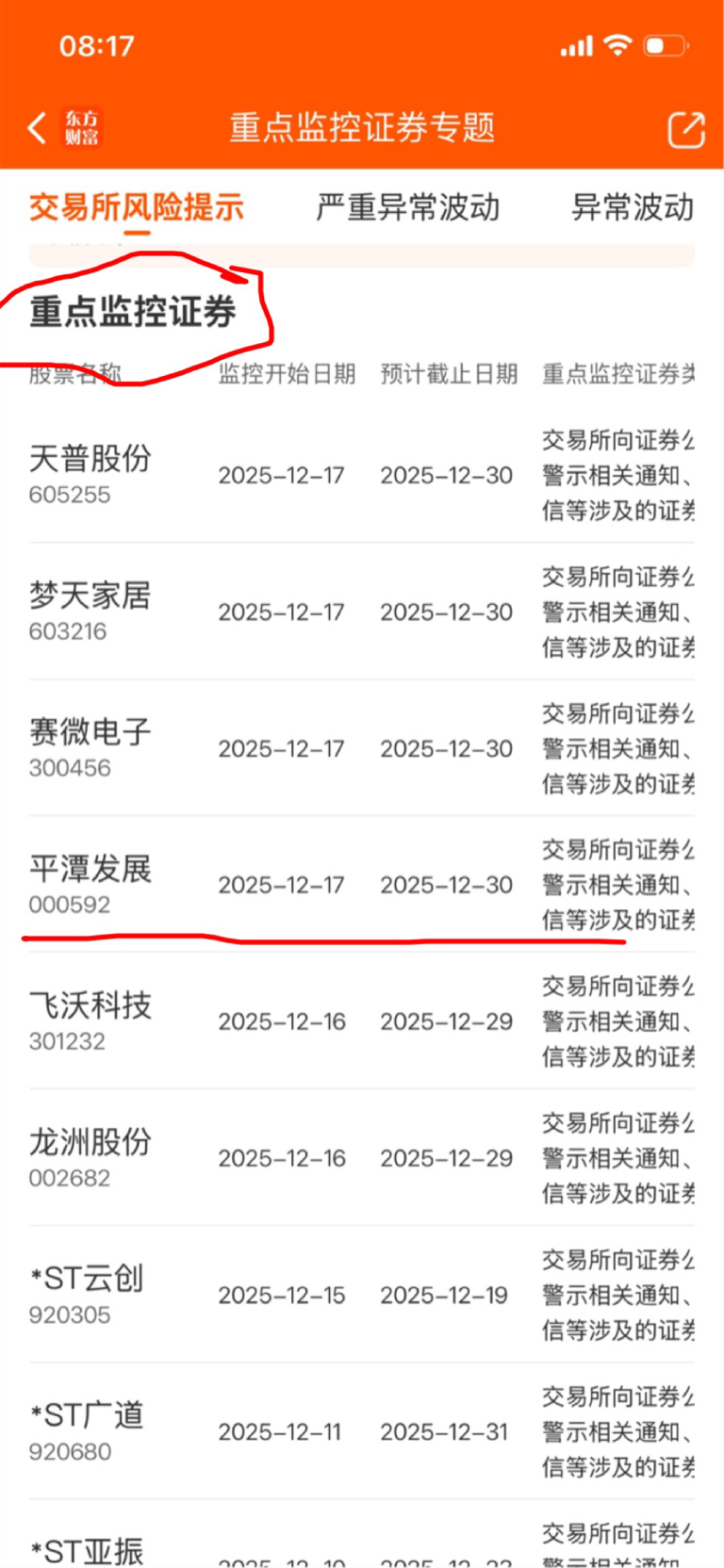 上次12.3三日重点监控延续当天跌停,第二天深水7个点。天普,梦居也重点监控,平