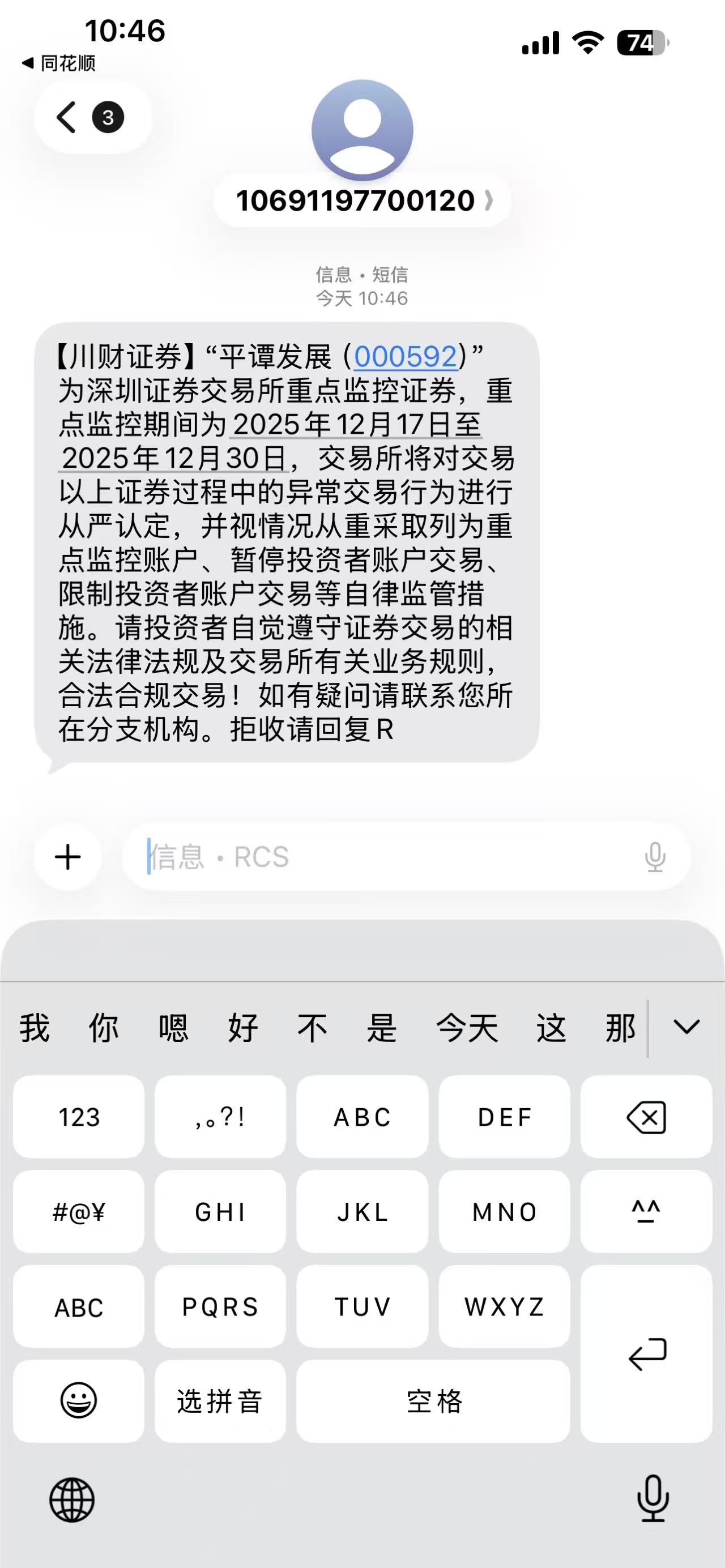 $平潭发展(SZ000592)$ 收到短信了,确实是被重点监控了,大家自己看着办吧