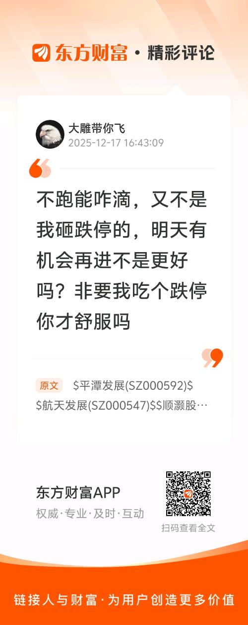 $平潭发展(SZ000592)$ $航天发展(SZ000547)$ $顺灏股份(SZ002565)$ 有些人真的是反智人士。平潭发展除了做t的底仓,其他的仓位我今天是跑了,难道我不能跑?有些黑子智商简直堪忧!