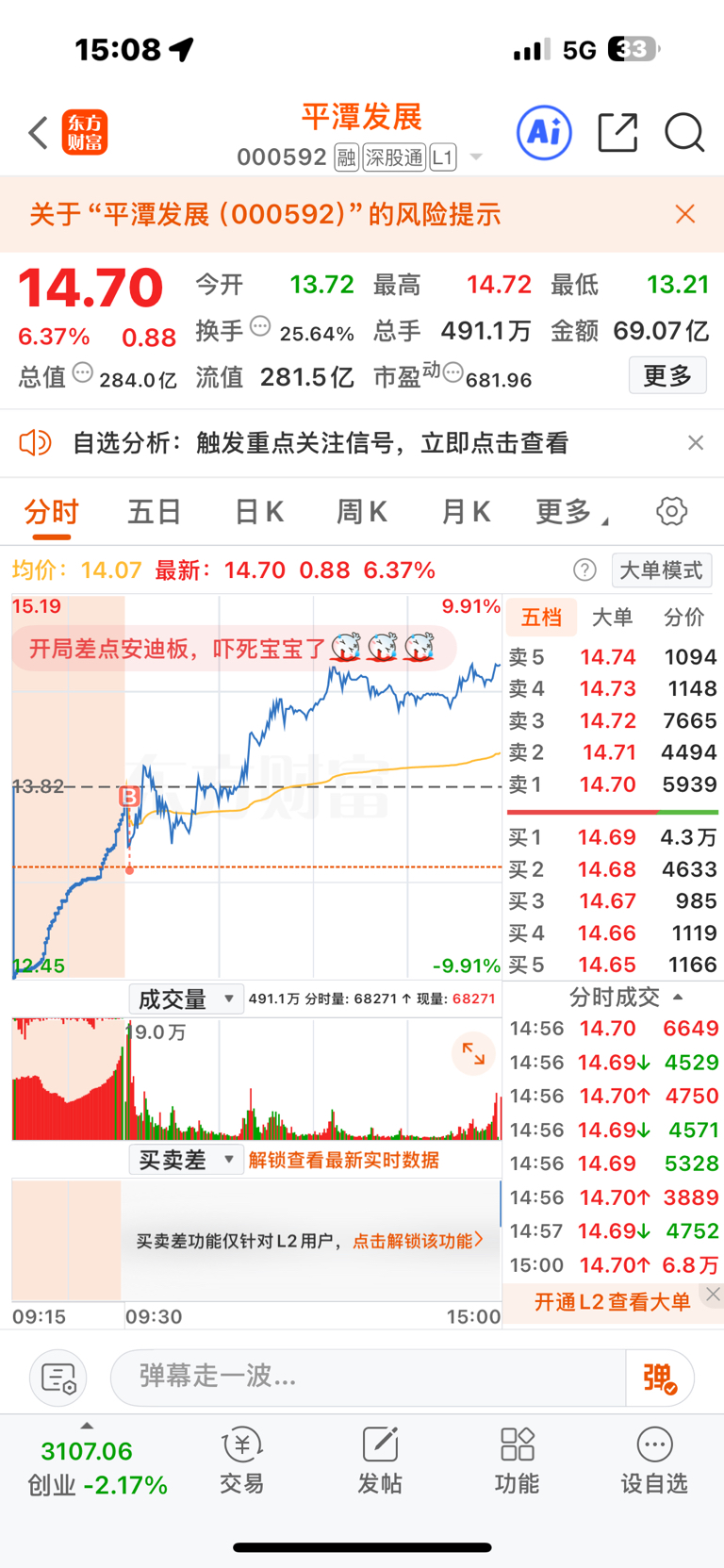 $平潭发展(SZ000592)$ 就三十几手,明天涨停让我走
