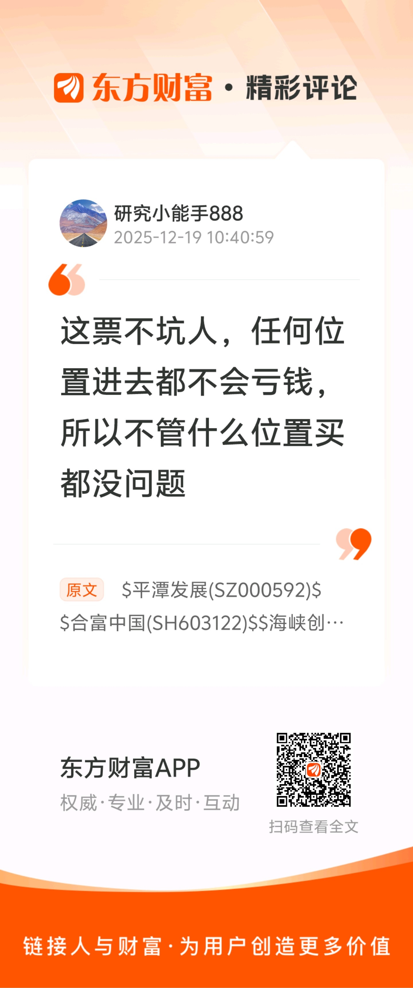 温馨提示: 1.根据《证券法》规定,禁止编造、传播虚假信息或者误导性信息,扰乱证券市场;2.用户在本社区发表的所有资料、言论等仅代表个人观点,与本网站立场无关,不对您构成任何投资建议。用户应基于自己的独立判断,自行决定证券投资并承担相应风险。《东方财富社区管理规定》