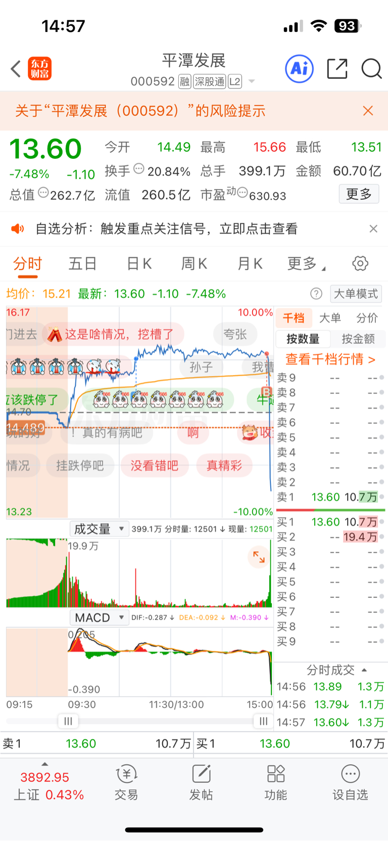 $平潭发展(SZ000592)$ 下周全部卖了销户了,我认了,这是我一个人的游戏,真tm的是在针对我啊!!?我玩 呢 , m