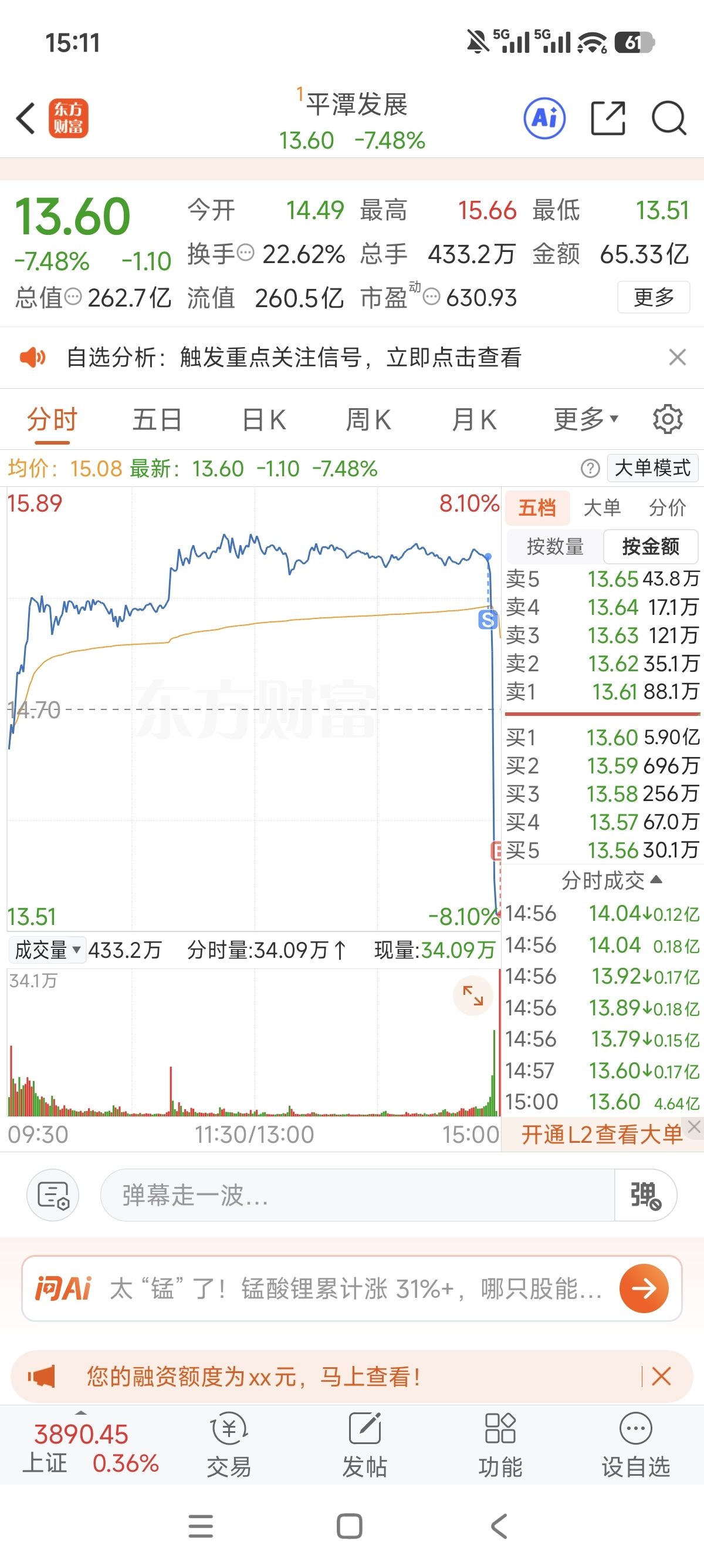 $平潭发展(SZ000592)$ 差半分钟就砸到我了有大佬知道为啥一下暴跌嘛没遇到过这场面