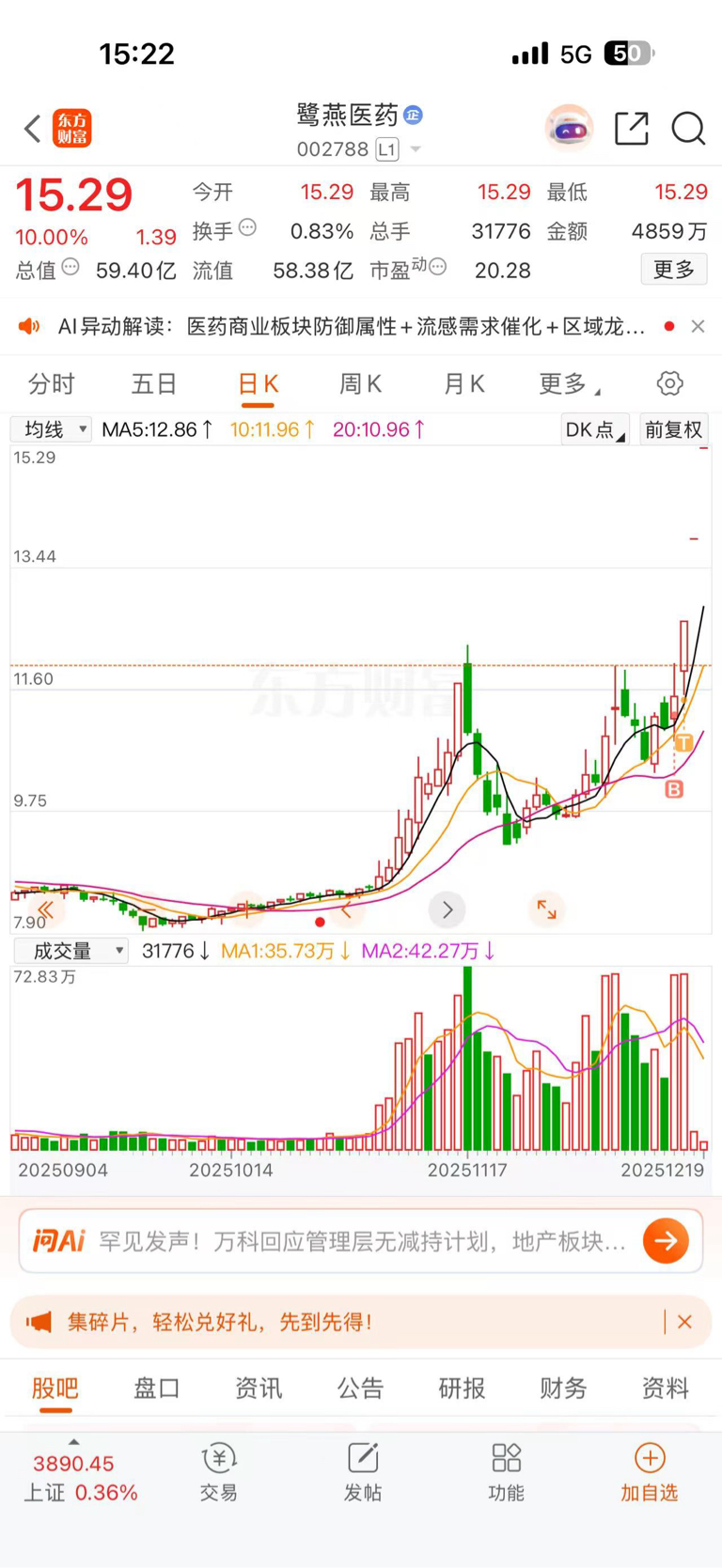 $平潭发展(SZ000592)$ 今天尾盘,充分说明了现在谁才是龙头。高位老龙头集体跳水,低位新的新皇纹丝不动。新的市场总龙头已经出来了,现在你告诉我,现在这盘面谁才能跨年?$鹭燕医药(SZ002788)$
