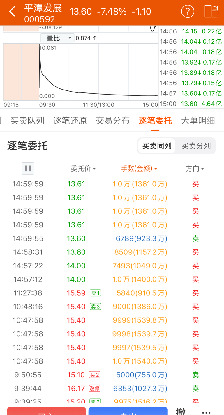 $平潭发展(SZ000592)$ 你们在哪里看到有万手砸盘了,这种趋势龙头,除非有大利空,不然怎么会一字地板,你们见过几个