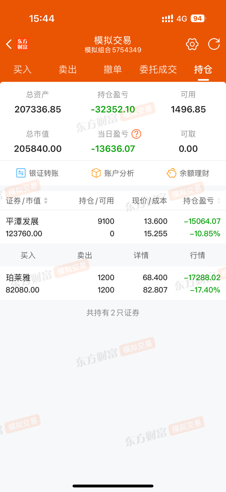 终于买死了,不好意思,是模拟盘,天天看你涨,你不死千千万万的股都起不来