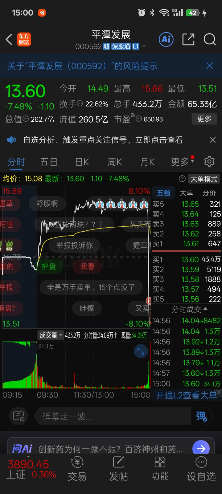 $平潭发展(SZ000592)$ 我要是再不出手就跌停了
