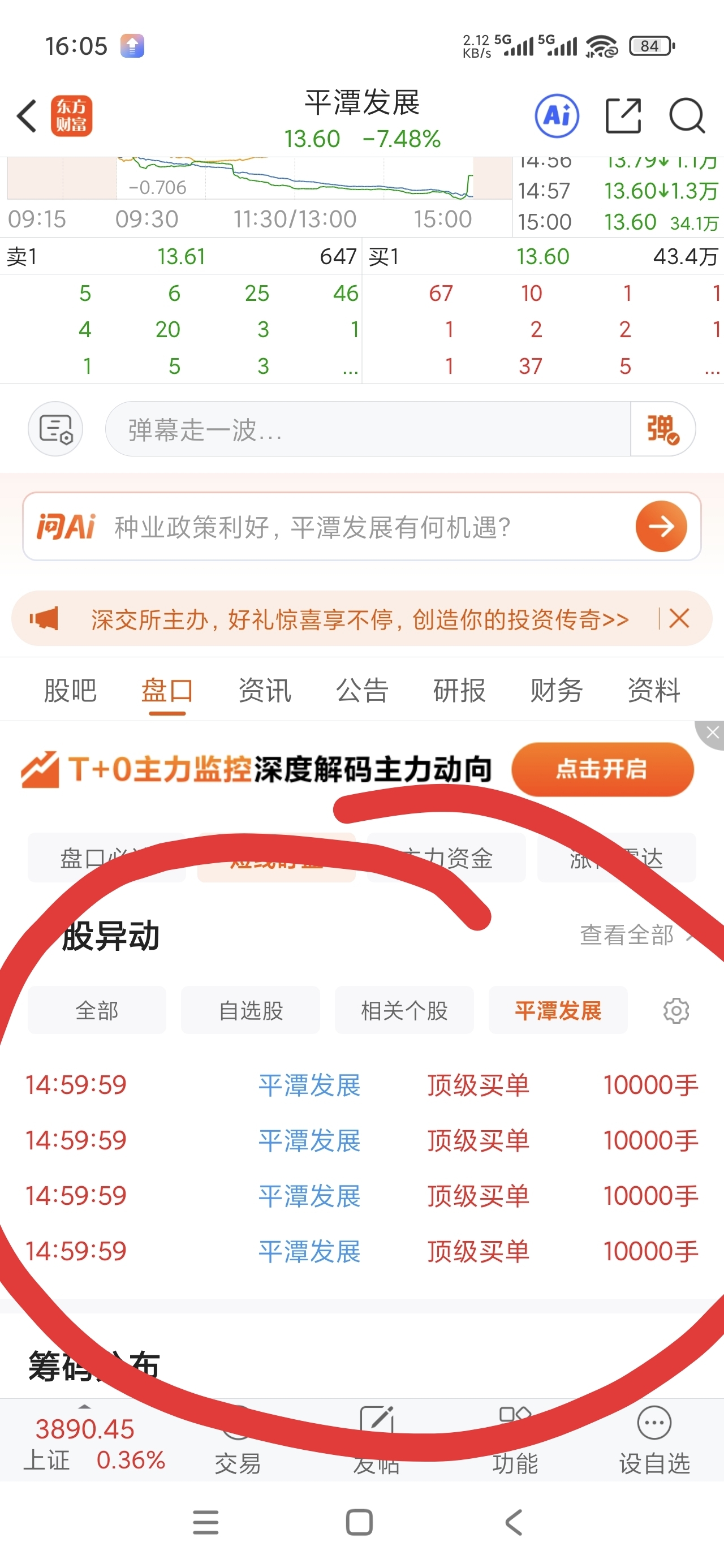 恐慌盘吓出了多少散户;下周没有这么便宜的筹码了。几个千手大单,吓跑了30多万手抛