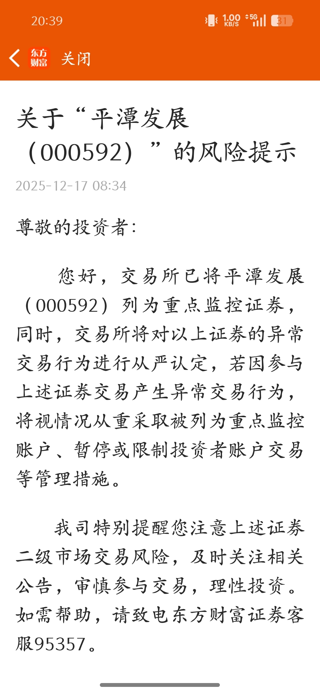 $平潭发展(SZ000592)$