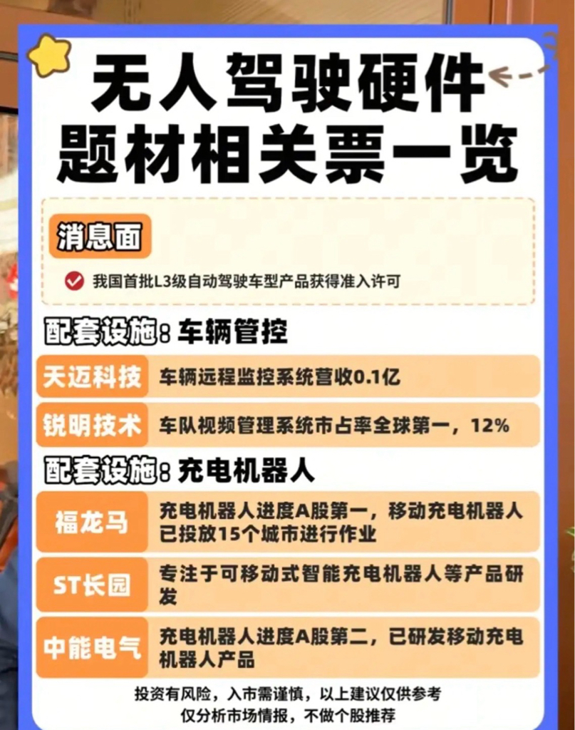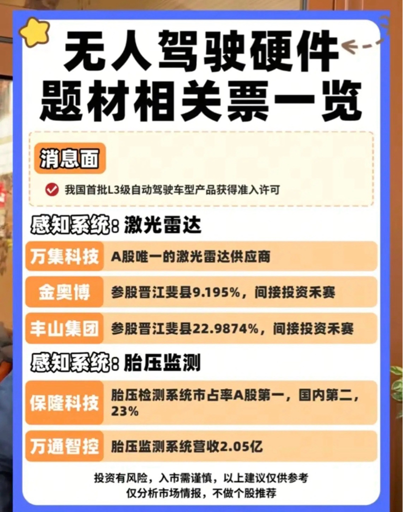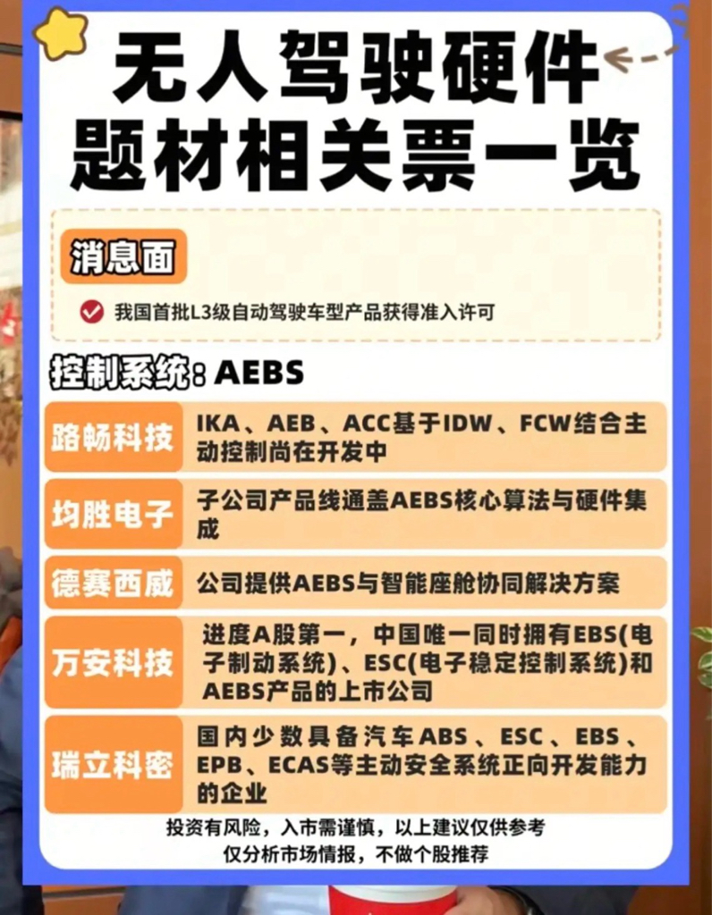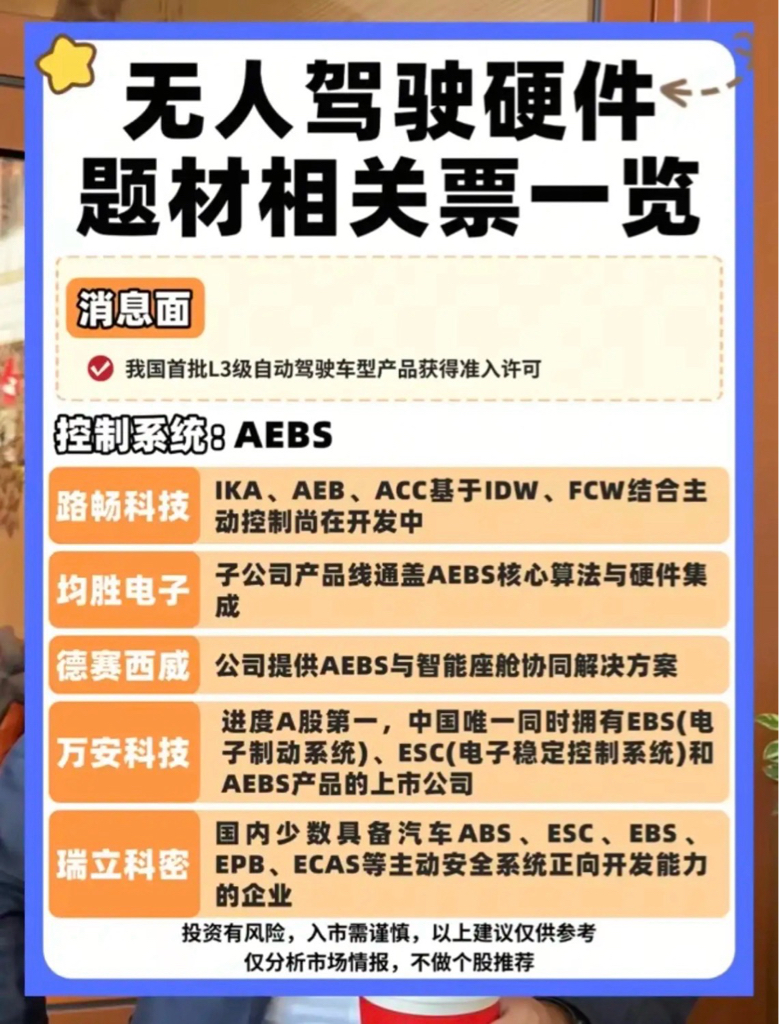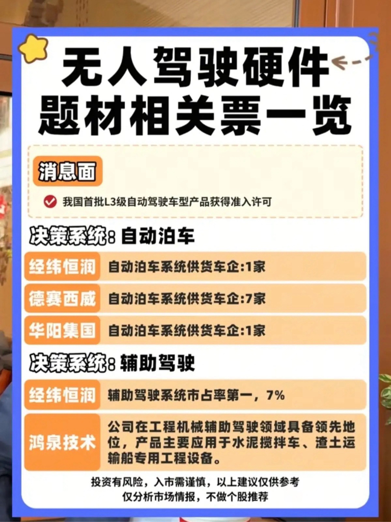 无人驾驶硬件赛道,有望接棒福建、海南地域概念,成为市场新风口!其核心布局方向聚焦七大领域: