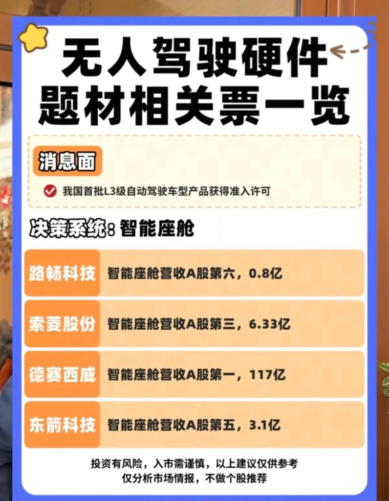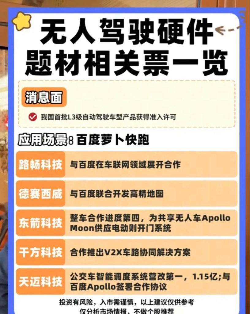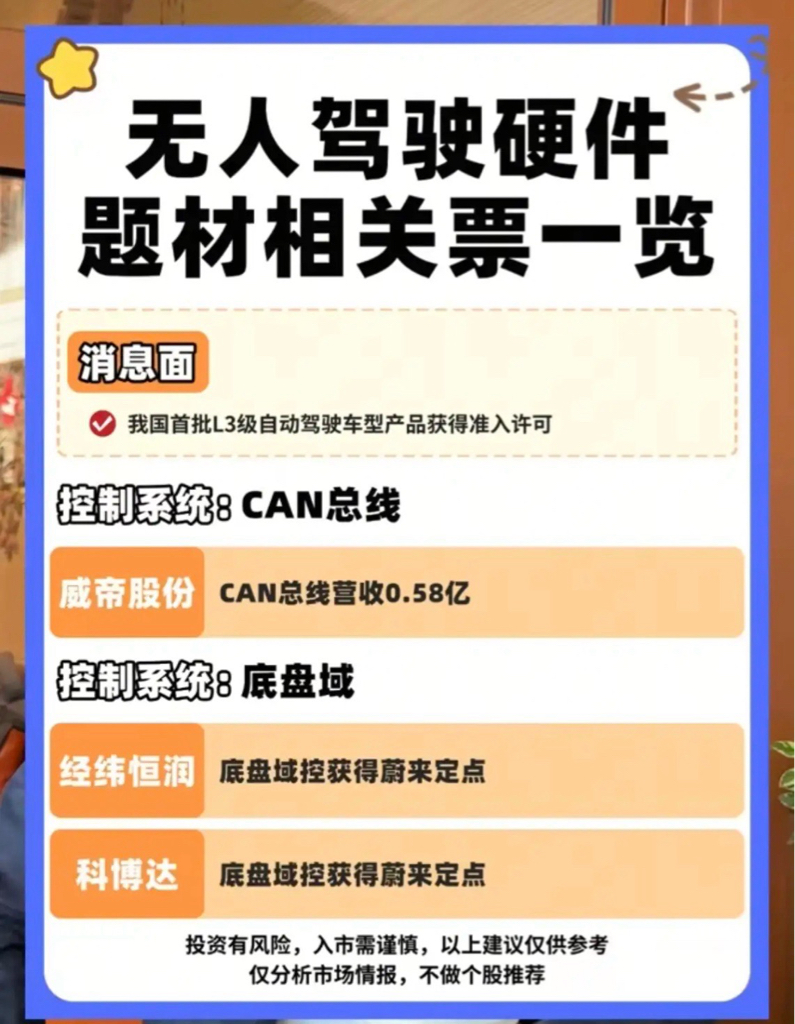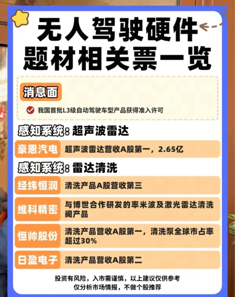 无人驾驶硬件赛道,有望接棒福建、海南地域概念,成为市场新风口!其核心布局方向聚焦七大领域: