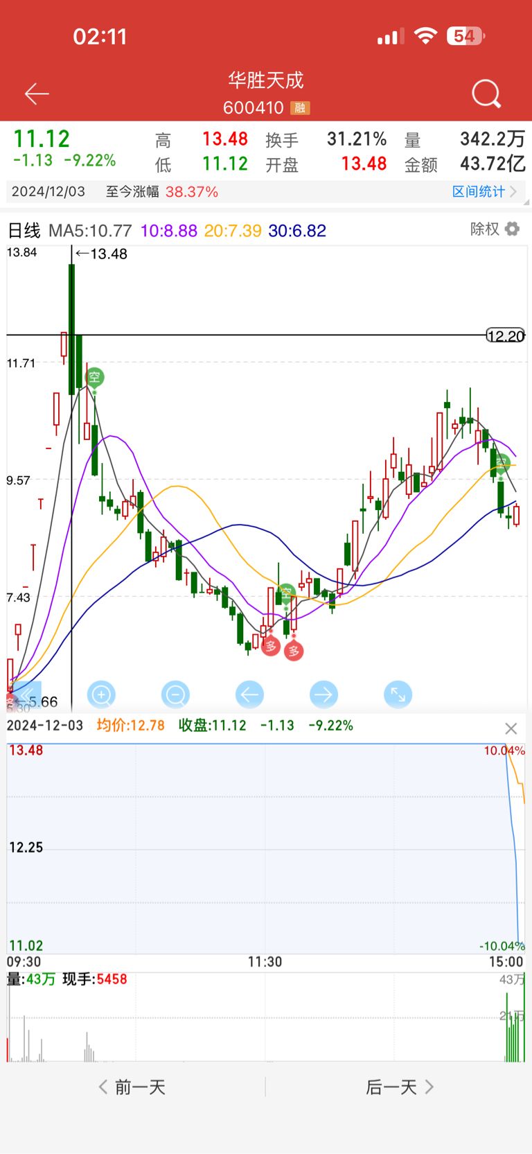 $平潭发展(SZ000592)$ 看看去年12月3日的华胜天成,20个点的断魂刀,安慰下平潭的兄弟们。