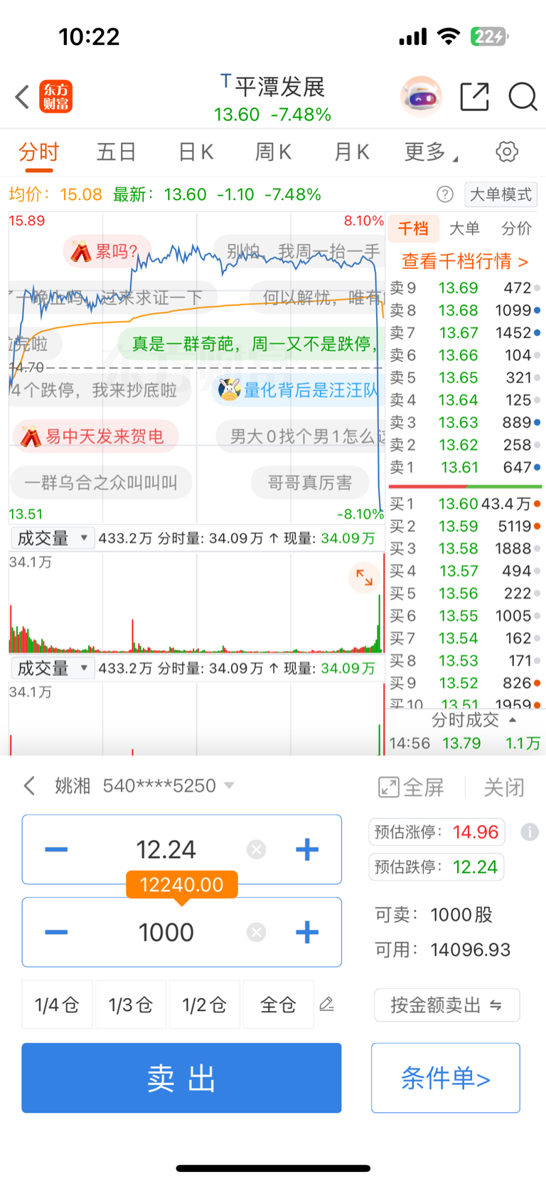 $平潭发展(SZ000592)$ 周一割肉走人,老子看谁跑的有我快,竞价挂跌停,坑货