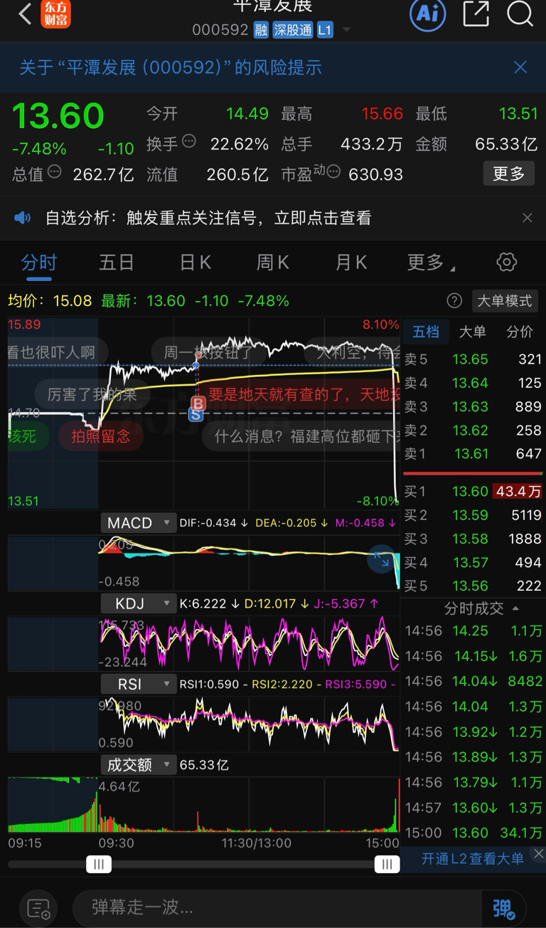 $平潭发展(SZ000592)$ 贪心作祟,本来从不关注热点股的,要么就是持仓的股成为热点股,要么就是小仓位闹下眼子,这下好了,就伸手了两下,最后一下来了个几十万的重仓,然后吃了个大面,一周两个涨停的盈利,在平潭直接吐出去了9层。被市场教育了,还是要有敬畏心啊,不能因为一时的盈利,蒙蔽了双眼。