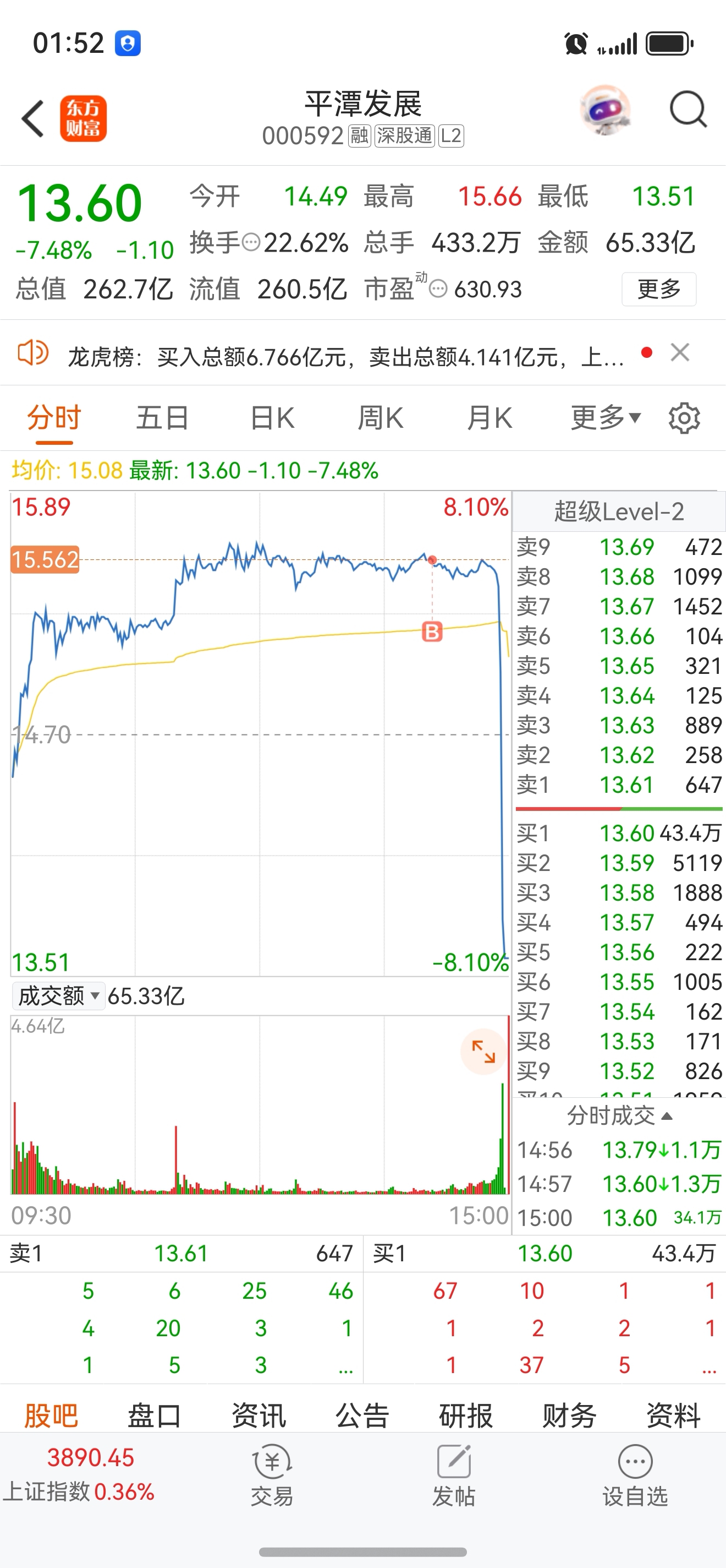 $平潭发展(SZ000592)$ 你是有多恶心吧,刚进的,尾盘你就这样玩,市场到底怎么了。