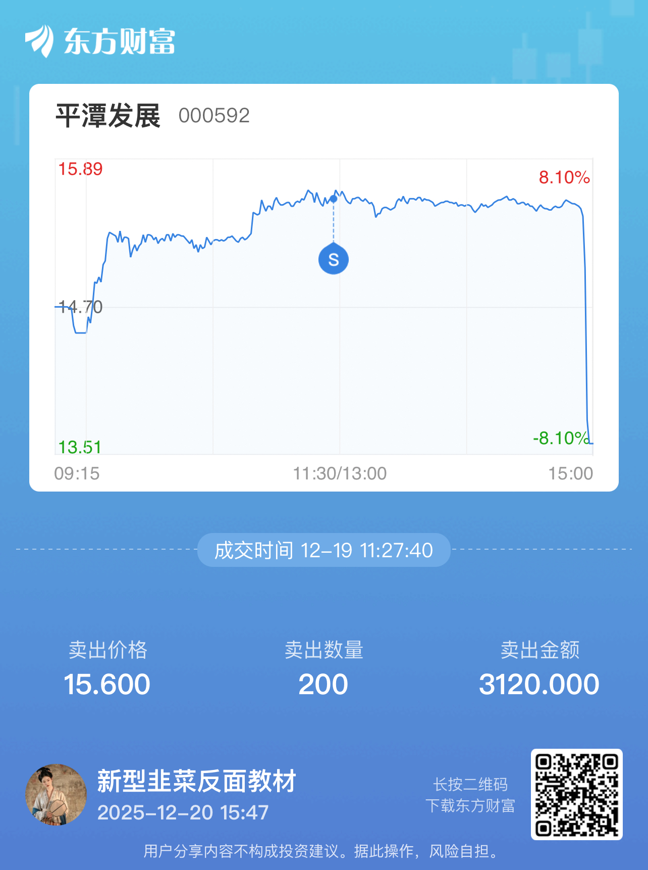 温馨提示: 1.根据《证券法》规定,禁止编造、传播虚假信息或者误导性信息,扰乱证券市场;2.用户在本社区发表的所有资料、言论等仅代表个人观点,与本网站立场无关,不对您构成任何投资建议。用户应基于自己的独立判断,自行决定证券投资并承担相应风险。《东方财富社区管理规定》