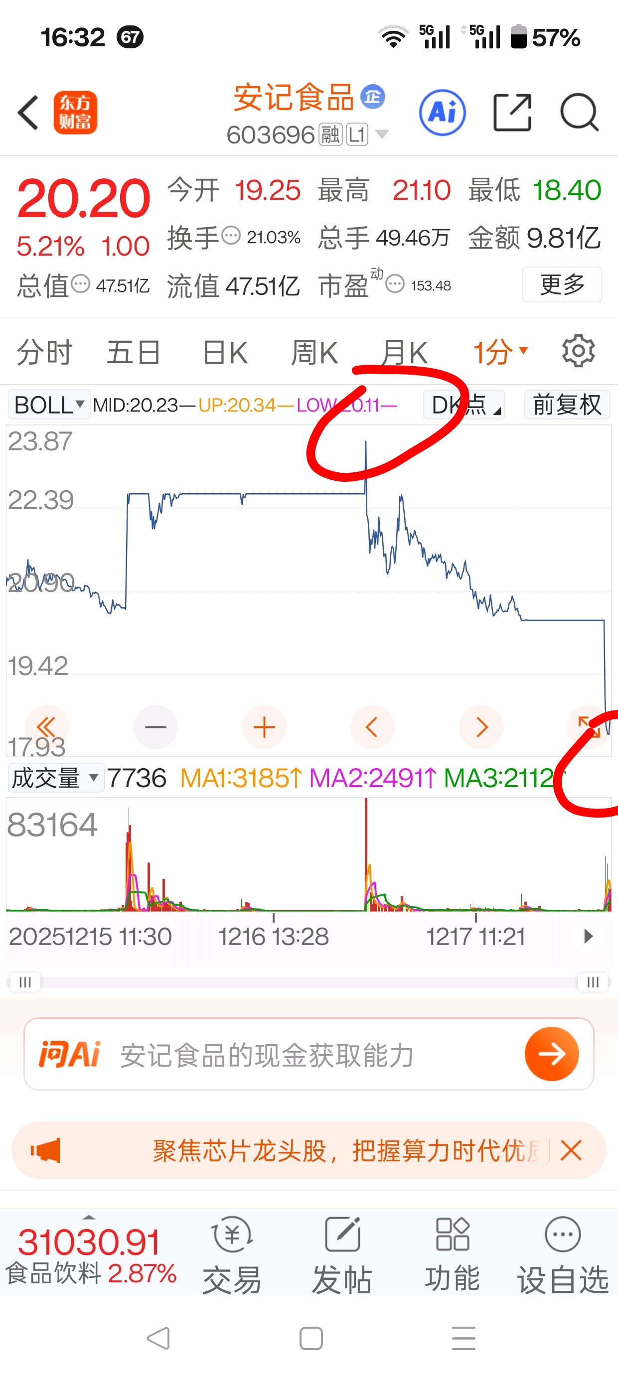 跌了十三个点,就把你们吓成这个样子?又不是天地板,封死在地板上。看看安记食品,二