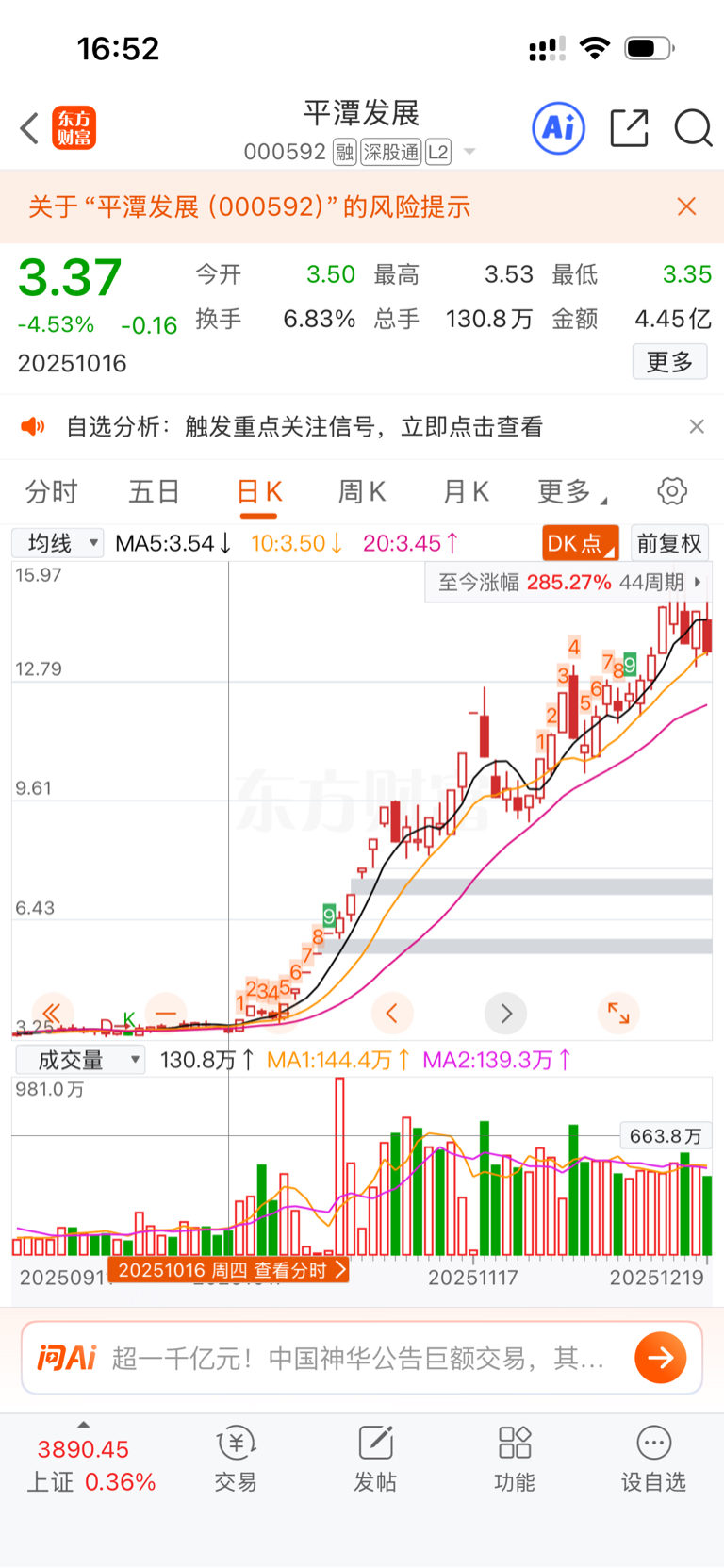 $平潭发展(SZ000592)$ 就按照这个标的来说,10.16日到12.19日两个月来涨了400%,牛股就是牛股,下周一买1手玩玩