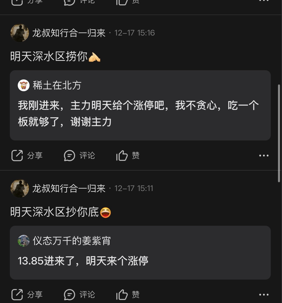 温馨提示: 1.根据《证券法》规定,禁止编造、传播虚假信息或者误导性信息,扰乱证券市场;2.用户在本社区发表的所有资料、言论等仅代表个人观点,与本网站立场无关,不对您构成任何投资建议。用户应基于自己的独立判断,自行决定证券投资并承担相应风险。《东方财富社区管理规定》