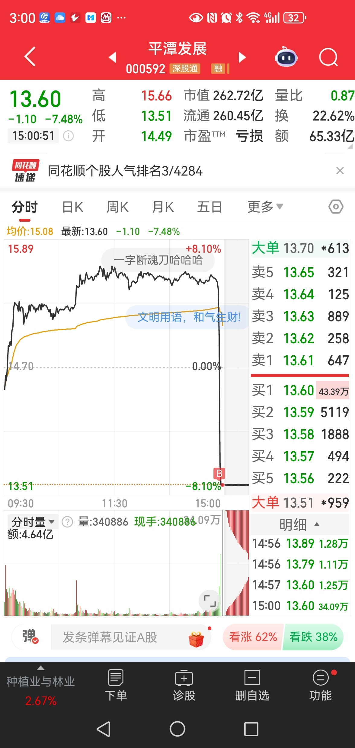 $平潭发展(SZ000592)$ 为什么敢接?周一看结果吧!#炒股日记#